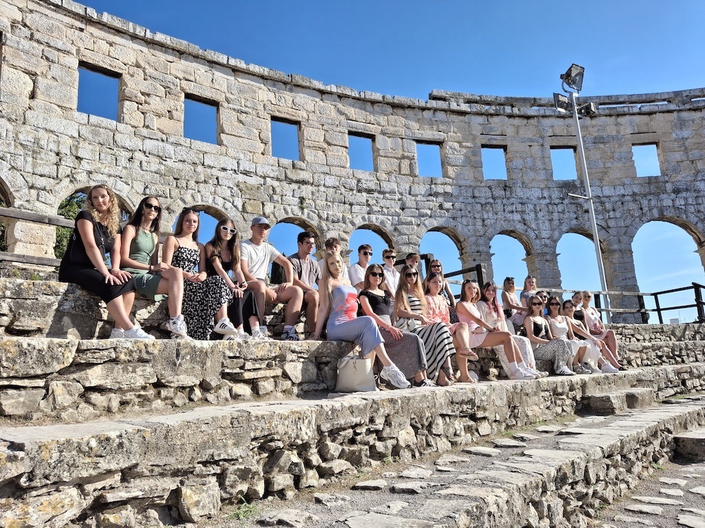Młodzież miała okazję zobaczyć pozostałości kultury antycznej Puli: Arenę, Forum, Łuk Sergiusza, Świątynię Augusta oraz zamek Kastel.