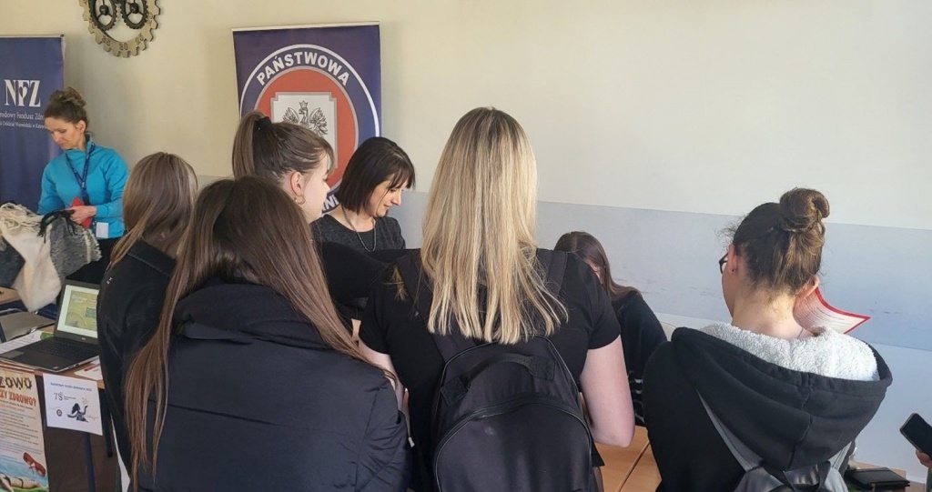 Przedstawiciele NFZ informowali jak korzystać z Internetowego Konta Pacjenta oraz aplikacji MojeIPK oraz MojeFizjo+. Uczniowie i nauczyciele mieli również możliwość uzyskania Europejskiej Karty Ubezpieczenia Zdrowotnego.