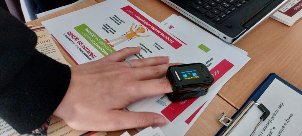 Powiatowa Stacja Sanitarno-Epidemiologiczna przygotowała stoiska, na których prowadzona była dystrybucja materiałów edukacyjnych związanych z tematem spotkania oraz dokonywano pomiaru ciśnienia tętniczego krwi i saturacji.