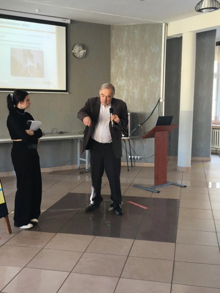 W dniu 29.03 w ZSME odbyło się spotkanie profilaktyczne pod hasłem „Bezpieczni latem” , które zostało zorganizowane przy współpracy z Powiatową Stacją Sanitarno-Epidemiologiczną w Żywcu oraz śląskim oddziałem NFZ Delegatura w Bielsku - Białej. Podstawą merytoryczną wydarzenia były ogólnopolskie programy profilaktyczne: Znamię! Znam je?”, „Nie bądź atrakcyjny dla kleszczy! oraz „Brązowo, ale czy zdrowo? Łap słońce z głową”. Podczas spotkania, które prowadziły uczennice z klasy 2aLO Jessica Worek oraz Kamila Słowik uczniowie dowiedzieli się jak bezpiecznie korzystać ze słońca i chronić się przed czerniakiem. Nauczyli się także samobadania skóry i oceny wyglądu znamion, które należy skonsultować z lekarzem. Gościem specjalnym wydarzenia był lek. med. Piotr Gaj, dermatolog, który wygłosił krótką prelekcję oraz przeprowadził badanie za pomocą dermatoskopu. Uczniowie dowiedzieli się także jak chronić się przed ukąszeniem przez kleszcze oraz jakie są objawy chorób odkleszczowych.