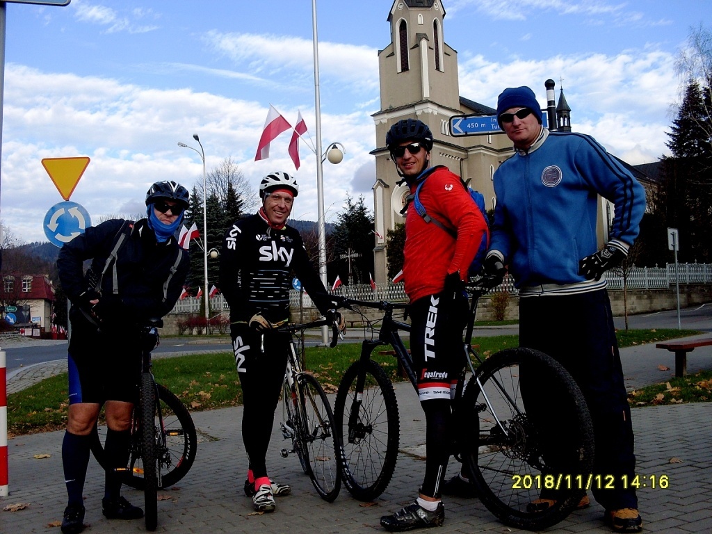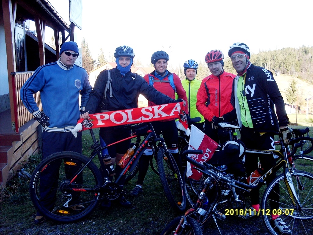 W miniony poniedziałek, 12 listopada grupa nauczycieli z naszej szkoły (organizatorzy: Daniel Pietraszko i Rafał Harańczyk, a następnie dzielnie ich wspierający uczestnicy: Grzegorz Binda, Michał Zapart oraz Sebastian Mojżesz) postanowiła w dość nietypowy sposób uczcić 100-lecie niepodległości. Zamiast wygodnie wylegiwać się w łóżku i korzystać z uroków wolnego dnia, panowie zdecydowali się na sportowe obchody tego święta. Głównym celem akcji zainicjowanej przez Daniela Pietraszkę było upamiętnienie 100 rocznicy odzyskania przez Polskę niepodległości oraz propagowanie zdrowego stylu życia, aktywności fizycznej i integrację naszego środowiska w ZSM-E. Rajd rozpoczął się wczesnym rankiem 12 listopada, a nasi bohaterowie wystartowali z Żywca, jadąc m.in. przez Szczyrk, Wisłę, Istebną, Rajczę oraz Milówkę. Nasi rowerzyści na 100 – lecie Niepodległości w czasie ok. 8 godz. przejechali ponad 115 km, pokonując przy tym ponad 1700 m przewyższenia. Droga wspinała się m.in. na przełęcze: Salmopolską (934 m n.p.m.) czy Kubalonkę (761 m n.p.m.), a niektórzy postanowili przy okazji wejść na wierzchołek Ochodzitej (895 m n.p.m.). Wszystkim uczestnikom gratulujemy hartu ducha, dobrej kondycji i wigoru.