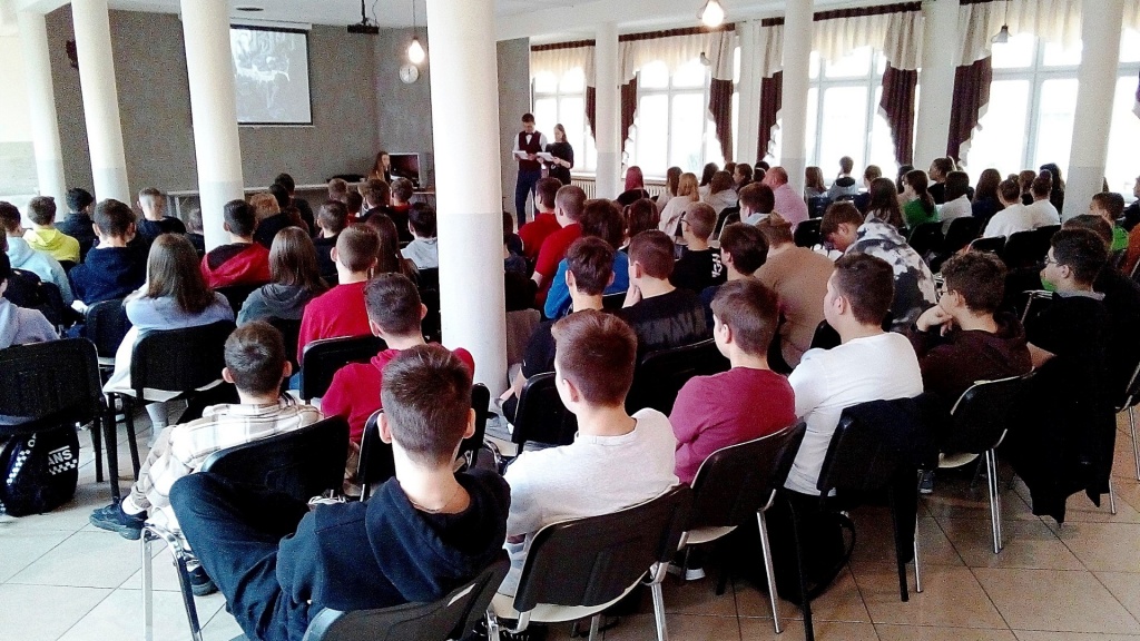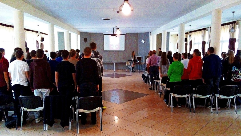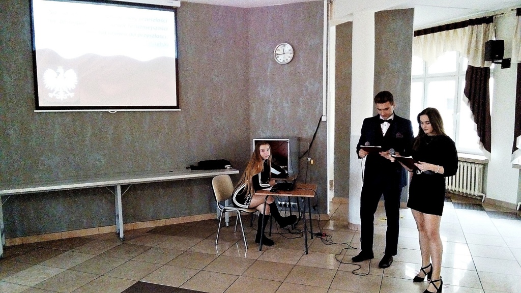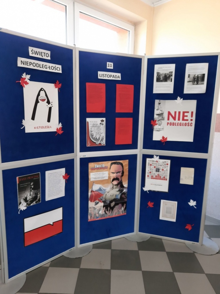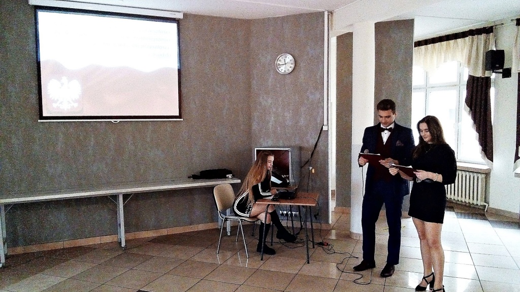 Dokładnie 104 lata temu, 11 listopada 1918 roku, po 123 latach zaborów Polska odzyskała niepodległość. Obchody kolejnej rocznicy, tak ważnego dla wszystkich Polaków Święta Narodowego, nie mogły ominąć również i naszej szkoły. Z tej okazji nauczyciele z biblioteki wraz z młodzieżą przygotowali wystawę tematyczną upamiętniającą wydarzenia i postacie związane z odzyskaniem przez Polskę niepodległości. Ponadto, wszyscy uczniowie klas pierwszych mieli okazję posłuchać prelekcji przygotowanej przez mgr Rafała Harańczyka, a prowadzonej przez uczniów (Oliwię Kozieł i Julię Paśko z 3aLO oraz Krzysztofa Stasicę z 4bTg). Wykład podejmował tematykę naszego Święta Narodowego, ze szczególnym uwzględnieniem tragicznych losów naszej ojczyzny, a także trudnej drogi do odzyskania niepodległości. Na zakończenie prelekcji młodzież odśpiewała hymn narodowy.