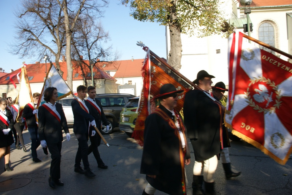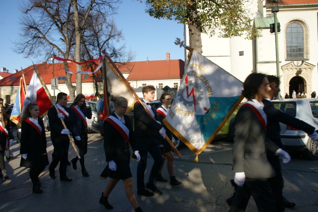 Uroczystości patriotyczne związane ze Świętem Odzyskania Niepodległości w Żywcu rozpoczęły się od złożenia kwiatów i zapalenia zniczy przed popiersiem Józefa Piłsudskiego (obok budynku Starostwa Powiatowego). O godzinie 10.00 w żywieckiej konkatedrze odprawiona została uroczysta Msza Święta za Ojczyznę. Po nabożeństwie władze miasta, powiatu oraz poczty sztandarowe szkół i licznych organizacji udały się na Rynek. Podczas oficjalnych uroczystości Burmistrz Żywca w swoim przemówieniu zwrócił uwagę na współczesne pojmowanie patriotyzmu. Na zakończenie uroczystości parlamentarzyści, przedstawiciele władz samorządowych oraz organizacji pozarządowych złożyli na płycie Rynku kwiaty. W tegorocznych obchodach 11 listopada naszą Szkołę w poczcie sztandarowym reprezentowali uczniowie kółka historycznego: Kacper Cader, Filip Grzegorczyki Dawid Moroń.