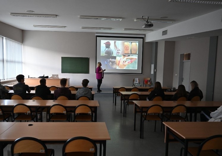 W dniu 28.09 klasa 2aLO wzięła udział w warsztatach organizowanych w ramach Dni Otwartych ATH. Uczniowie odwiedzili zaprzyjaźniony z naszą szkołą Wydział Nauk o Zdrowiu, gdzie mieli okazję wysłuchać ciekawego wykładu „Medycznie o tatuażach i nie tylko” oraz przećwiczyć BLS, czyli podstawowe zabiegi resuscytacyjne na specjalistycznych fantomach. Młodzież z dużym zaangażowaniem wzięła także udział w prezentacji „Zapraszam Cię na salę operacyjną – czyli jak wygląda praca pielęgniarki” połączonej z pokazem narzędzi, odzieży ochronnej, procedur i leków stosowanych podczas zabiegów operacyjnych.