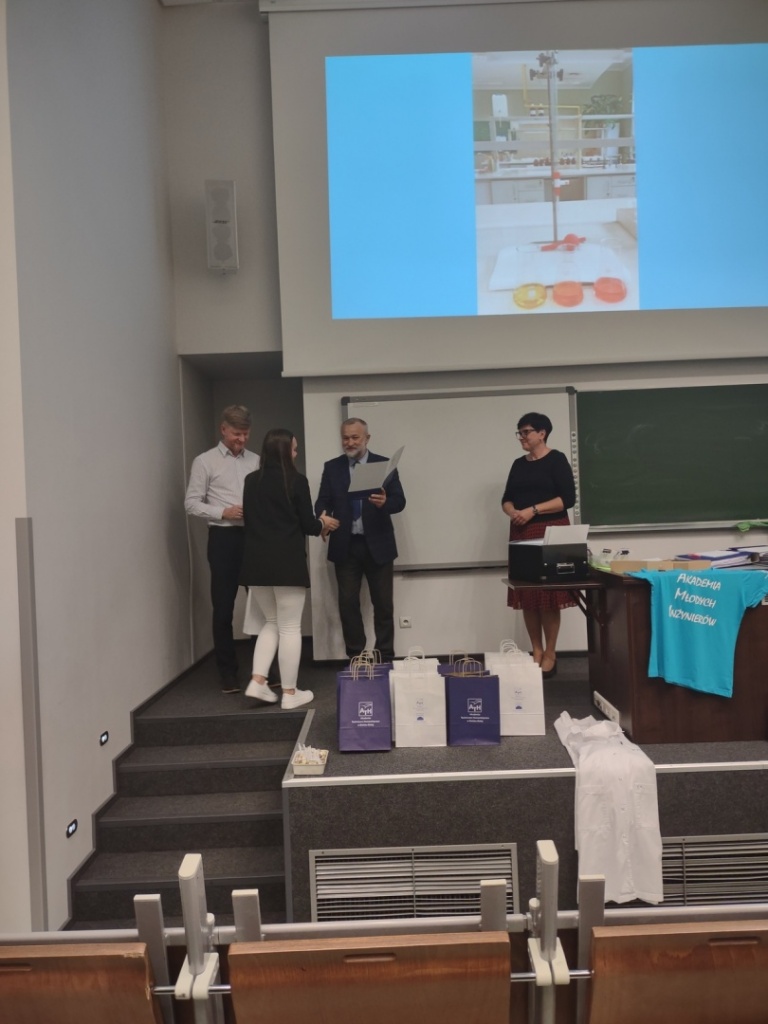 W dniach 4.05 - 8.06.2022r. uczennice klasy 3aLO (Emilia Piecuch, Agnieszka Mrzygłód, Dominika Siwek) brały udział w projekcie “AMI-go Akademia Młodych Inżynierów” organizowanym przez Wydział Inżynierii Materiałów i Środowiska Akademii Techniczno-Humanistycznej w Bielsku-Białej. Projekt obejmował zajęcia warsztatowe w laboratoriach chemicznych. Zdobywanie nowych doświadczeń, miło spędzony czas i możliwość zasmakowania studenckiego życia na pewno zachęci, by w kolejnych latach tu wrócić i powtórzyć projekt, do którego zachęcamy innych uczniów naszej szkoły.