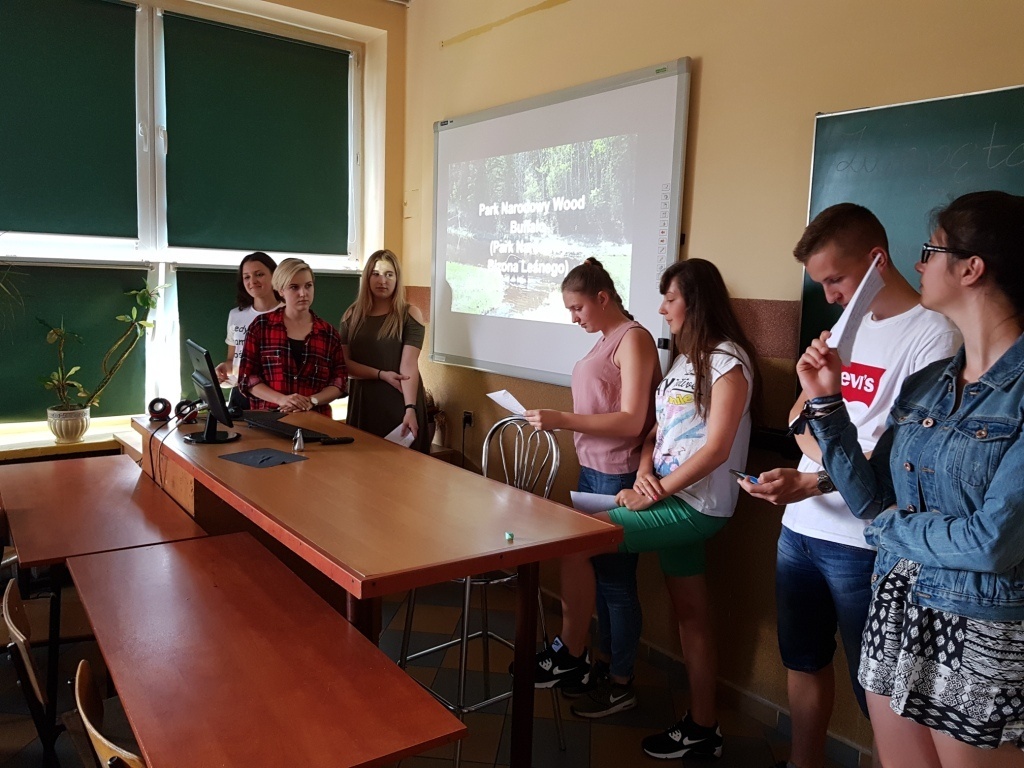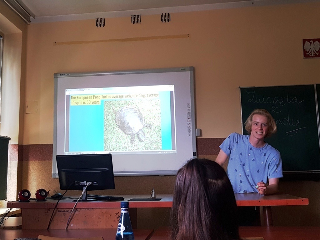 W dniu 29 maja uczniowie z klasy 2a LO wzięli udział w lekcji biologii w języku angielskim z udziałem native speakera Sama Morrisa. Uczniowie przygotowali prezentacje multimedialne na temat gatunków roślin i zwierząt występujących na obszarze Kolumbii Brytyjskiej, natomiast Sam omówił znane polskie gatunki zwierząt.
