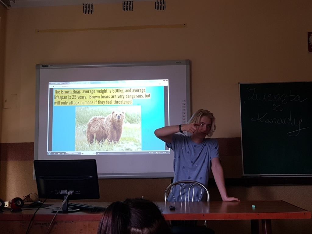 On 29th of May, 2018 the students from the 2alo class took part in a Biology lesson which was led in English. It was with a native speaker, Samuel Morris. The students prepared some multimedia presentations about animals and plants from British Coloumbia. Sam Morris presented Polish animals.
