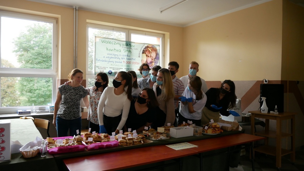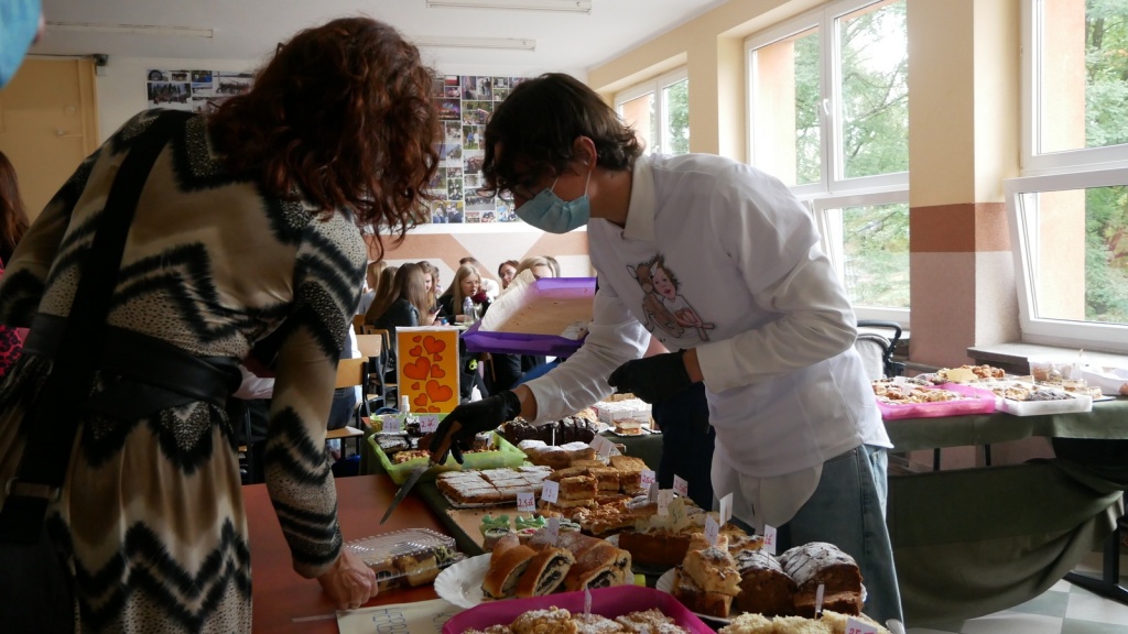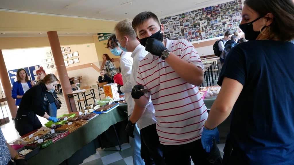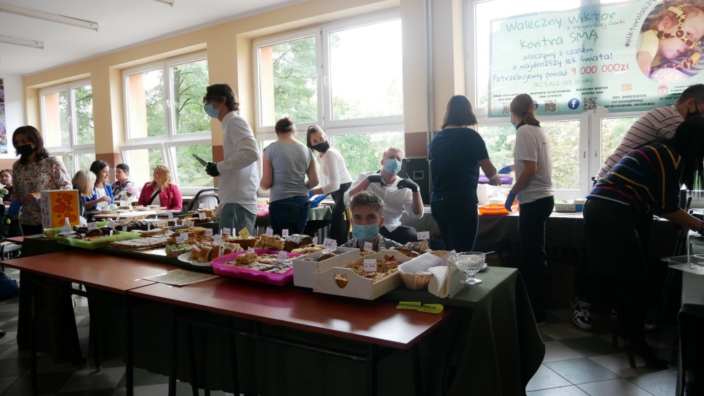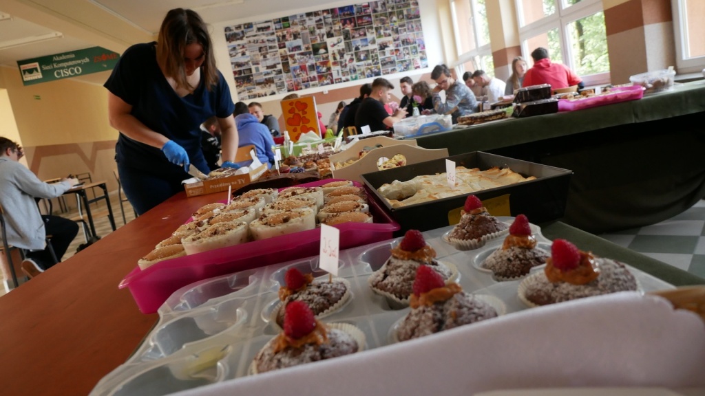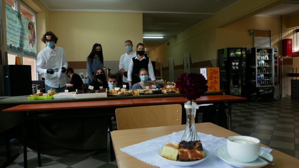 W ubiegłym tygodniu zorganizowaliśmy charytatywną kawiarenkę, z której dochód miał wspomóc finansowo rodziców Wiktorka Szczechowiaka z Węgierskiej Górki. I… właściwie wszystko przerosło nasze oczekiwania! Te dwa dni trochę zmieniły rzeczywistość szkolną. W końcu niecodziennie można napić się dobrej kawy i zjeść wykwintne ciacho na szkolnym korytarzu, posłuchać muzyki, a nawet potańczyć ;-) Dziękujemy zatem ogromnej rzeszy zaangażowanych w tę inicjatywę. Nie sposób wymienić wszystkich tych, którzy upiekli i dostarczyli ciasta, babeczki i desery. Możemy jednak wskazać tych, którzy postanowili się sprawdzić w roli pracowników kawiarni, a byli to: Karolina Biegun, Zuzanna Kowalczyk, Michał Buława, Dawid Bryja, Patryk Pawlus, Szymon Urbański, Adam Krzyżowski (klasa 4bT); Oliwia Łoboz, Oliwia Bednarz, Emilia Piecuch, Laura Kudzia (klasa 3aLO). Opiekę nad stoiskiem szkolnej firmy sprawowali: Marcelina Kopka i Szymon Zowada z 4eT. Czas umilili tańcem: Karolina Sawicka (1cT), Milena Marszałek (1aLO), Adam Czarnota (2eT), Oskar Gibas (1eT), przygotowani przez Panią Annę Kamińską. Jedyną odważną osobą, która podjęła wyzwanie Pana Daniela Pietraszki i spróbowała swych sił na szachownicy, okazała się Gosia Szpila (1aLO), której gratulujemy odwagi i umiejętności. Dziękujemy wszystkim, którzy kupując rozmaite wiktuały i przedmioty wsparli zbiórkę funduszy na leczenie chłopca: dyrekcji, nauczycielom, pracownikom obsługi i administracji, rodzicom oraz wspaniałym młodym ludziom, czyli uczniom ZSM-E! I nade wszystko – Pani Ani Rodak, która w teorii i w praktyce uczy podstaw przedsiębiorczości oraz Paniom Alicji Pryszcz, Annie Wyleciał, Monice Grzegorzek-Barcik i Edycie Polak-Tracz. I najważniejsze - udało się zebrać niebagatelną kwotę 6025,50 zł.