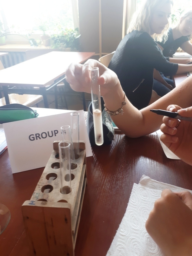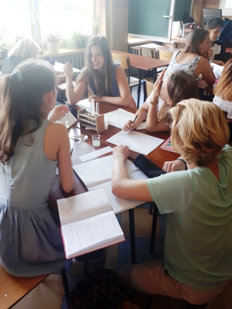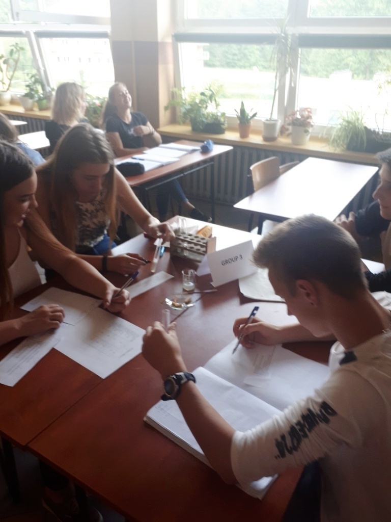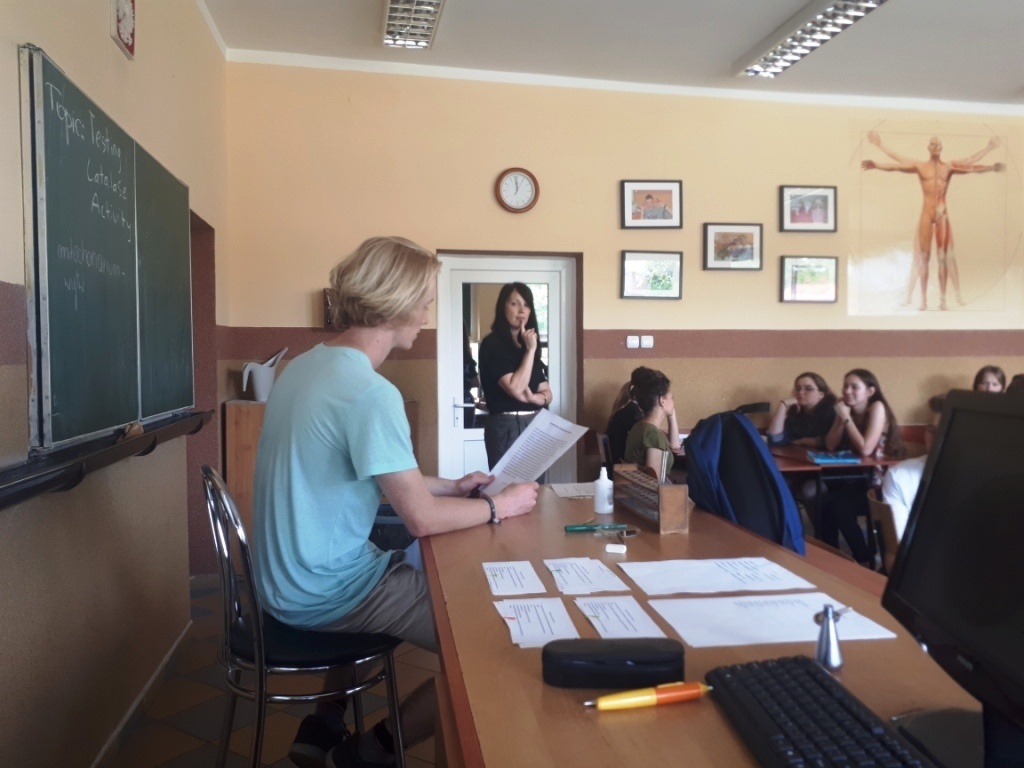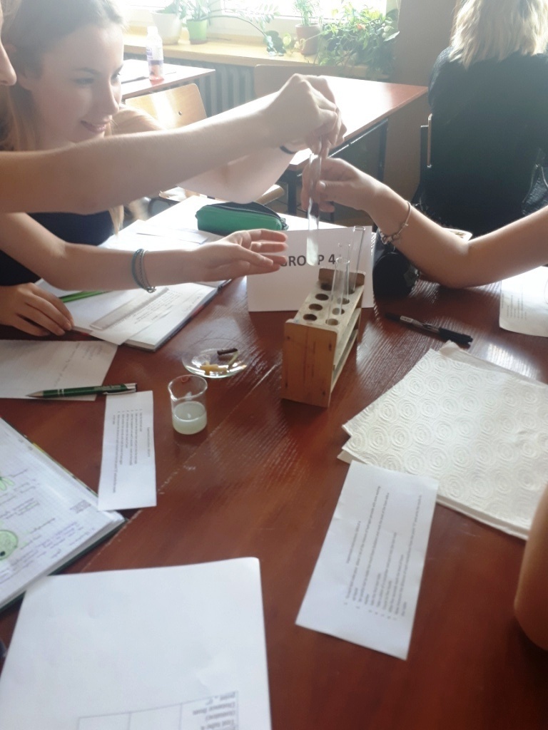 Uczniowie klasy 1a Liceum, o profilu biologiczno-chemicznym starali się znaleźć odpowiedź na to pytanie podczas lekcji biologii w języku angielskim, której temat brzmiał: Testing Catalase Activity, czyli: Badanie aktywności katalazy. Zadaniem uczniów podczas lekcji było przeprowadzenie serii doświadczeń sprawdzających aktywność katalazy w tkankach różnych organizmów żywych według instrukcji w języku angielskim, zapisywanie danych oraz wyciąganie wniosków na temat funkcji oraz aktywności tego enzymu. Dodatkowym wyzwaniem było przetworzenie i skorzystanie z kluczowych informacji źródłowych na temat działania katalazy prezentowanych przez naszego native speakera Sama, oczywiście w języku angielskim.