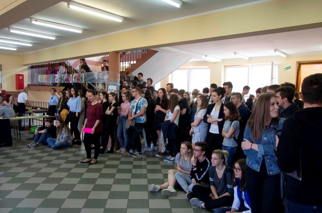 Klasy pierwsze wzięły udział w prelekcji, której tematem była profilaktyka nowotworowa. Korytarz na pierwszym piętrze opanowała klasa 2aLO, odpowiedzialna za kiermasz słodkości. Nowością była „strefa fit”, czyli stoisko z pysznymi deserami owocowymi. Tradycyjnie już pozyskana w ten sposób kwota (w tym roku to 1400 zł) zasili budżet Oddziału Onkologii i Hematologii Dziecięcej Szpitala Klinicznego nr w 1 w Zabrzu. Dłuższe przerwy należały do zespołu Twister, który zaprezentował swoje układy taneczne, w międzyczasie zapraszając wszystkich do belgijki. Dziękujemy Pani Ani Kamińskiej za opiekę nad tańczącymi dziewczynami, klasie 2aLO, dostarczycielom ciast i owoców oraz oczywiście wszystkim, którzy wsparli tę szlachetną inicjatywę!
