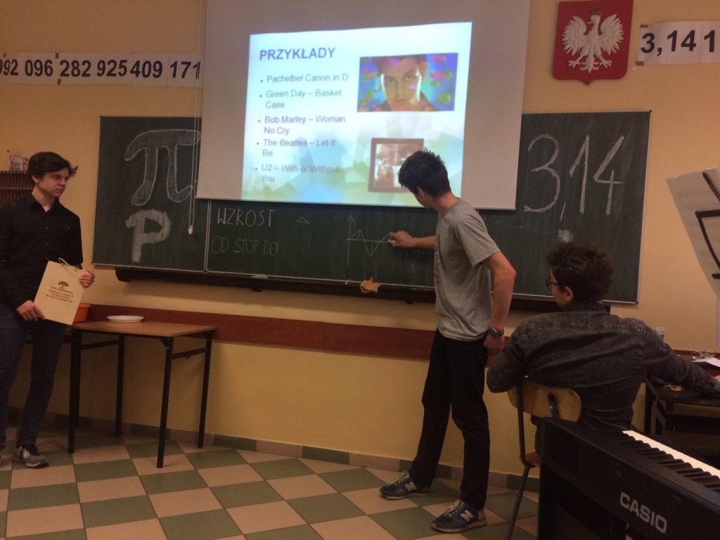 J. Pachelbela), w którym częstotliwości dźwięków mają złotą proporcję. Na uczestników zajęć czekały także słodkości, których ozdobą był oczywiście znak liczby Pi.