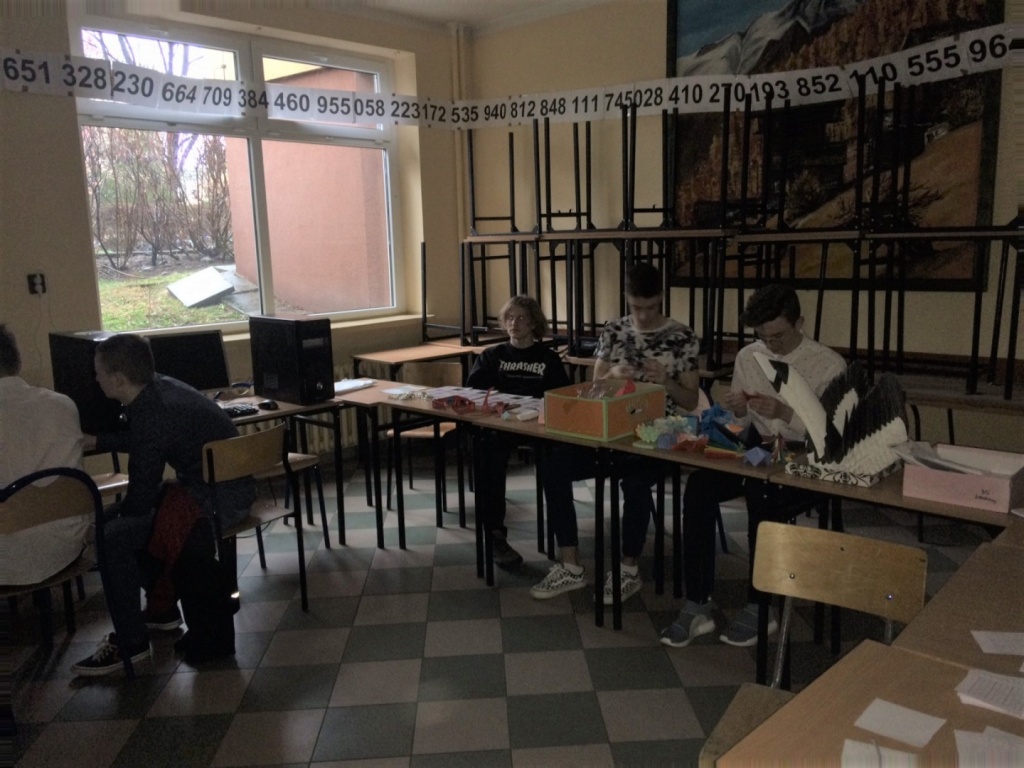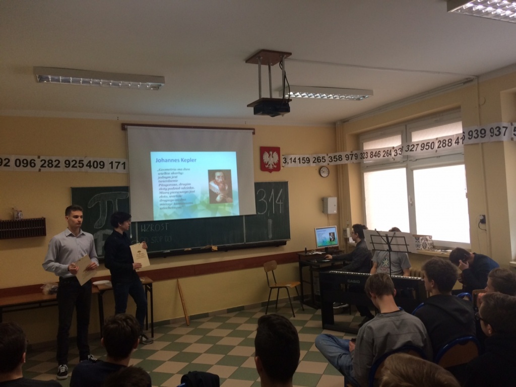 Drugi dzień obchodów był przeznaczony dla klas pierwszych. Uczniowie wzięli udział w zajęciach, podczas których zgłębili wiedzę na temat liczby Pi. Mogli się także przekonać, że matematyka jest obecna w życiu codziennym. Pierwszoklasiści mieli okazję zmierzyć się z różnorodnymi zagadkami matematycznymi, zadaniami logicznymi oraz sztuką origami.