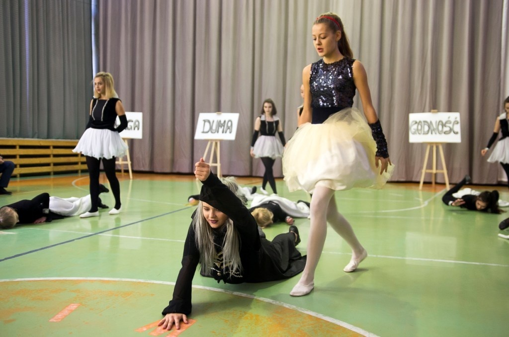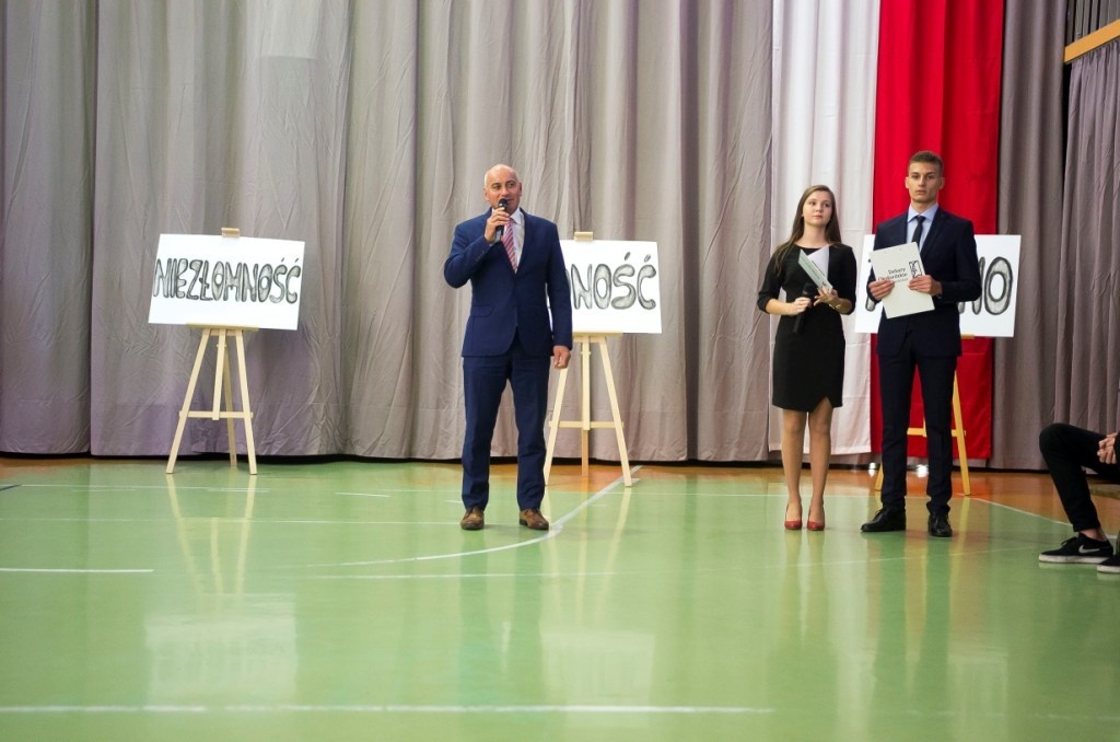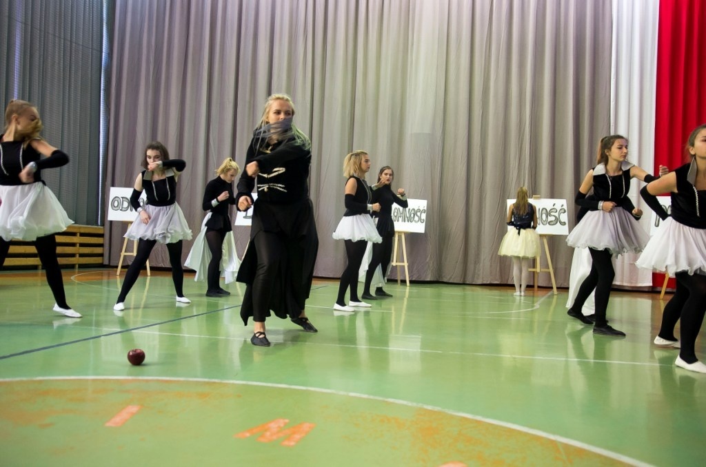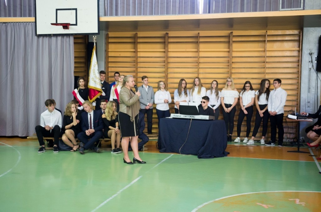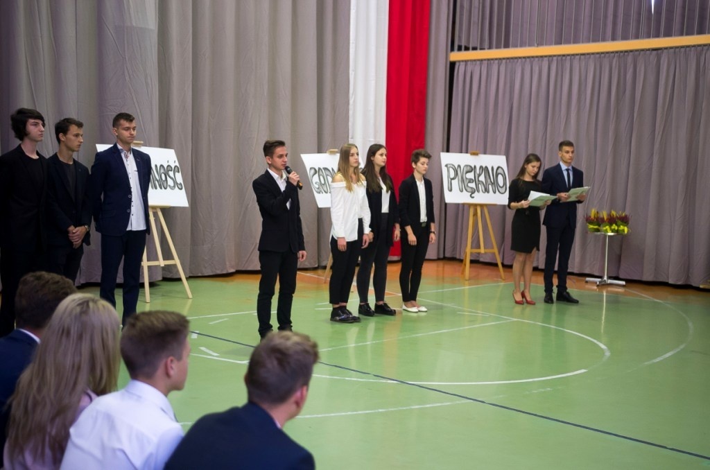 W piątek, 12 października w naszej szkole odbyła się akademia z okazji Dnia Edukacji Narodowej. W pierwszej części uroczystości młodzież zaprezentowała krótki program artystyczny, poświęcony twórczości Zbigniewa Herberta, wpisując się w ten sposób w ogólnopolską akcję „Rok 2018 – rokiem Zbigniewa Herberta”. Ten wybitny poeta, o biografii tragicznie uwikłanej w historię XX wieku, pozostawił po sobie wiersze, eseje, opowiadania, dramaty, słuchowiska. Był twórcą tzw. „postawy wyprostowanej”, piewcą wierności wartościom: dumie, odwadze, niezłomności, godności. Hasła te stały się motywem przewodnim akademii, wybrzmiały w recytowanych wierszach. Kolejną częścią uroczystości było ślubowanie uczniów klas pierwszych, którzy złożyli uroczystą przysięgę na sztandar szkoły, będącą symbolem dorosłości i uczniowskiej dojrzałości. Akademię uświetnił występ wielokrotnie nagradzanej grupy teatralnej „Matafora”, pracującej pod opieką p. Iwony Nogi-Bardyńskiej, prezentując inscenizację taneczną pt. „Snow white”. W tym szczególnym dniu nie zabrakło ciepłych życzeń przygotowanych przez samorząd uczniowski, a dyrektor szkoły oraz przedstawicielki rady rodziców podziękowali nauczycielom za trud włożony w edukację i wychowywanie młodzieży.