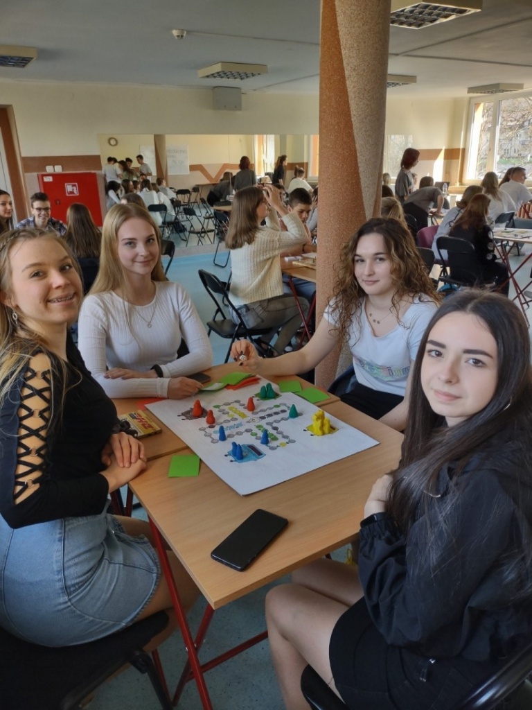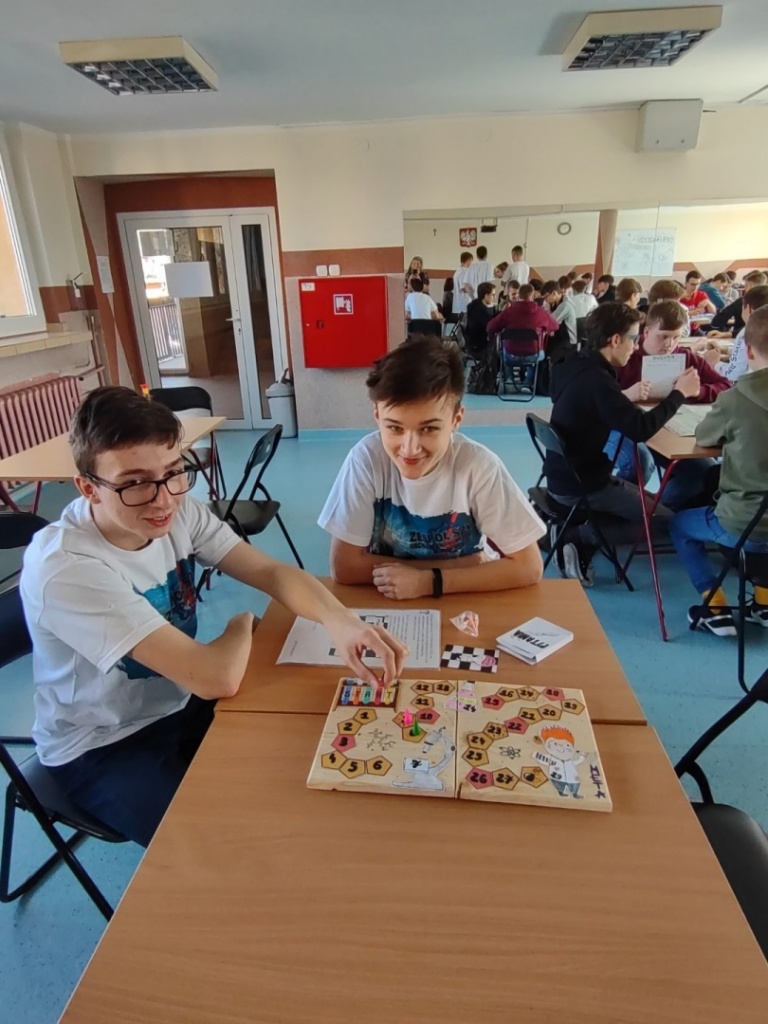 W dniach 24 i 25 marca 2022 roku uczniowie klas liceum i technikum w ramach rozrywki między lekcyjnej zagrali w gry planszowe, karciane oraz komputerowe o tematyce biologiczno - chemicznej. Klasy miały okazję sprawdzić swoją wiedzę między innymi odpowiadając na pytania w grze typu 5 sekund, grając w Monopoly czy sprawdzając spostrzegawczość w chemicznym Dobble. Dużo radości dostarczyła uczniom także gra w biologiczny Twister. Gry dostępne w naszym biologiczno-chemicznym kąciku były przygotowane przez młodzież ZSME. Uczniowie, którym udało się wygrać, byli nagradzani ocenami z aktywności. Wydarzenie zaszczycił również swoją obecnością Pan Dyrektor. Wszyscy uczniowie odwiedzający naszą salę gier byli bardzo zaangażowani w rozgrywki, dzięki czemu w przyjemny sposób utrwalili swoją wiedzę z biologii i chemii.