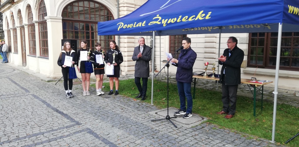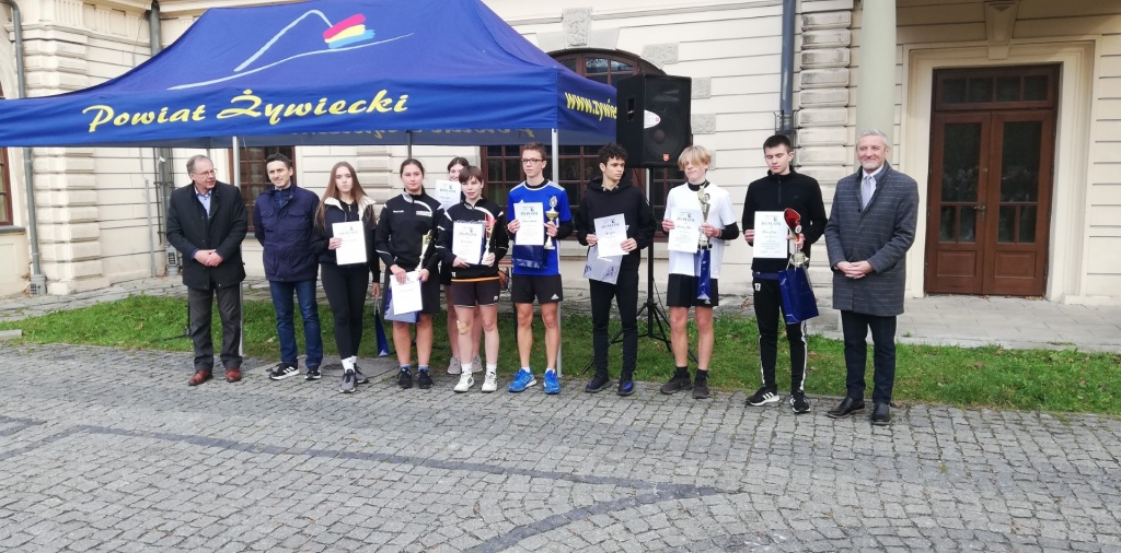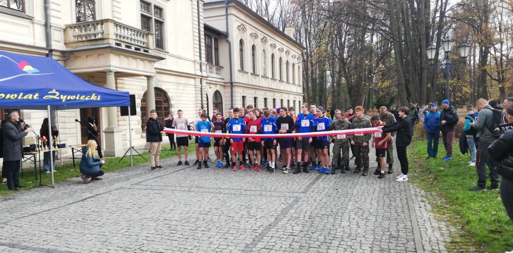 W biegu, którego celem było propagowanie wartości patriotycznych i promocja zdrowego trybu życia, wzięło udział prawie 90 uczniów ze szkół ponadpodstawowych powiatu żywieckiego. Po zakończeniu rywalizacji puchary, dyplomy i nagrody książkowe wręczyli Wicestarosta Stanisław Kucharczyk oraz Dyrektor Wydziału Oświaty i Wychowania Andrzej Widzyk.