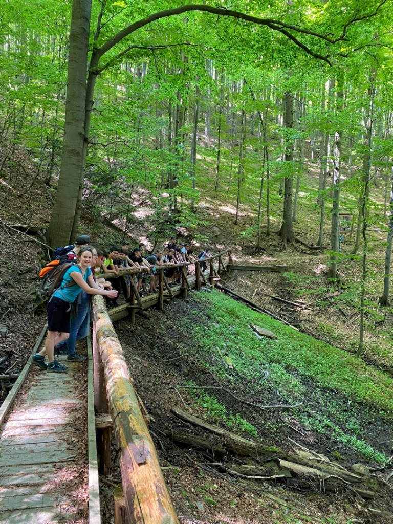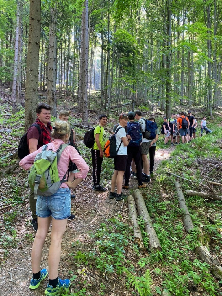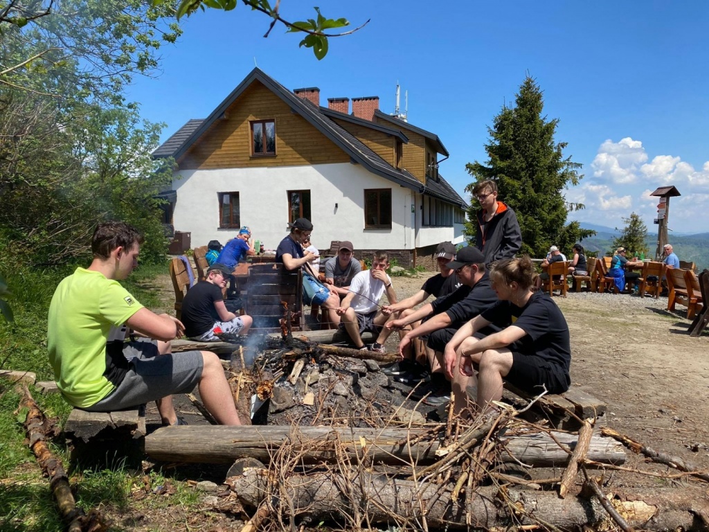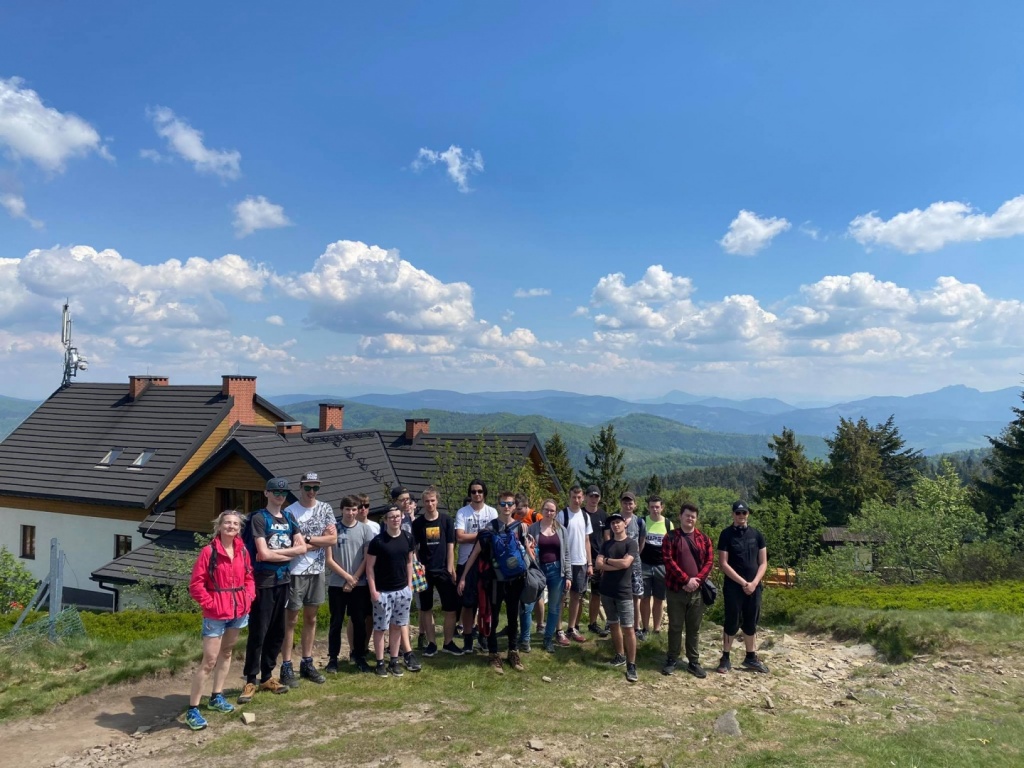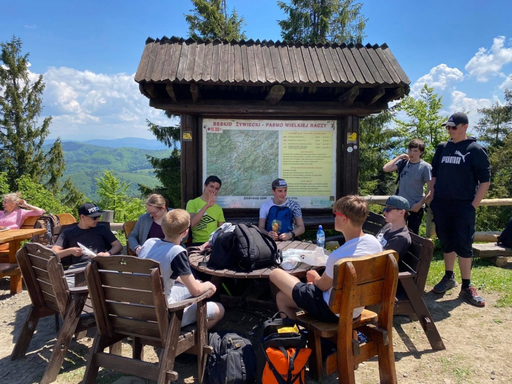 Zmęczeni siedzeniem przed komputerem, wpatrywaniem się w ekran (w oczekiwaniu na zadania oczywiście;-)), postanowiliśmy rozruszać się odrobinkę i zdobyć Wielką Raczę. W środę 9 czerwca wyruszyliśmy z parkingu w Rycerce Górnej. Wyruszyliśmy, trzeba przyznać, tempem iście sprinterskim, próbując dorównać kroku pani przewodnik! Wędrowaliśmy przez niezwykle interesujący Rezerwat Przyrody Śrubita, który jest najstarszym rezerwatem w Beskidzie Żywieckim (został utworzony w 1958 roku). Ciekawostką jest, że rośnie tu prawdopodobnie najwyższe drzewo w Polsce - świerk o wysokości 51,8 m. Trud długiej trasy wynagrodziły nam wspaniałe widoki z Wielkiej Raczy, obejmujące cały Beskid Żywiecki, Śląski oraz słowacką Małą Fatrę i odległe Tatry. Po odpoczynku (potrzebnym!) rozpaliliśmy ognisko i upiekliśmy kiełbaski. Pogoda i dobre humory dopisywały nam na całej trasie. Wycieczkę zakończyliśmy w tym samym punkcie, z którego wyruszyliśmy, wracając żółtym szlakiem. I okazało się, że nasza kondycja „popandemiczna” jest całkiem niezła. Pokonaliśmy bowiem 17km!