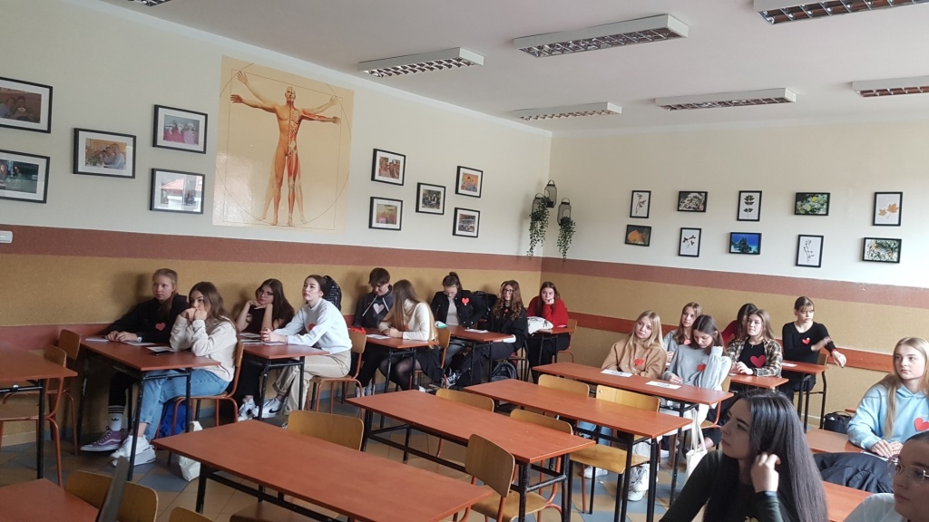 Dużo dobrej zabawy sprawiło uczniom przesłuchanie znanych im wcześniej piosenek, zawierających angielskie zwroty dotyczące symbolicznego znaczenia narządu. Klasy przygotowały się na zajęcia poprzez urozmaicenie swojego ubioru motywem serca.
