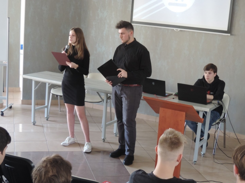 Drugi dzień z kolei był poświęcony prezentacjom, które uczniowie wykonali w ramach szkolnego konkursu „Matematyka wokół nas”. Film autorstwa Moniki Kleczyńskiej oraz Kamila Tracza z klasy 3dTg wprowadził nas w tematykę dnia.