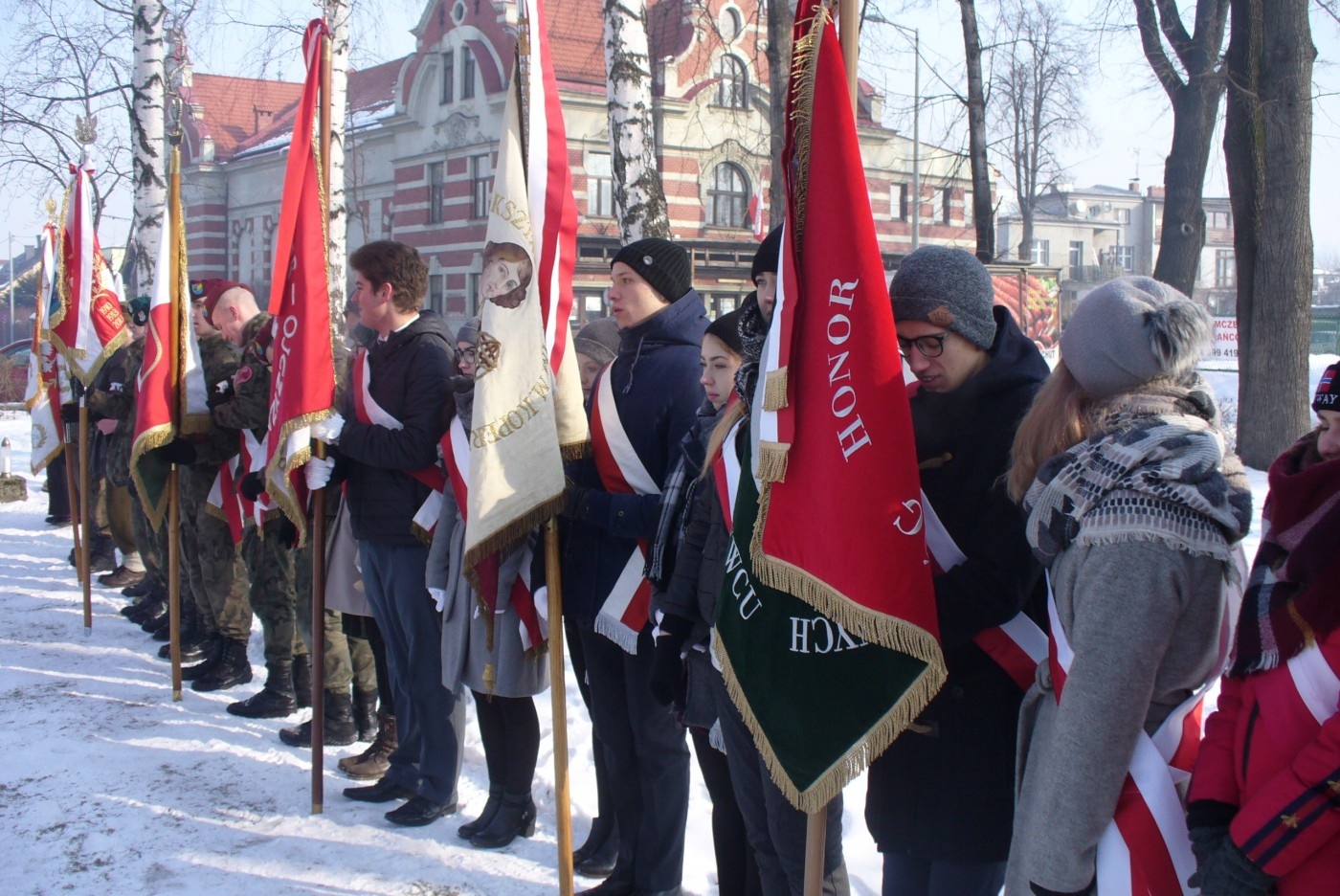 1 marca 2018 roku młodzież naszej szkoły wraz z nauczycielami historii wzięła udział w obchodach Dnia Pamięci „Żołnierzy Wyklętych”, zorganizowanych przez Starostę Żywieckiego Andrzeja Kalatę, Burmistrza Żywca Antoniego Szlagora oraz Zarząd Okręgu Podbeskidzie Związku Żołnierzy Narodowych Sił Zbrojnych. Poczet sztandarowy uczestniczył w Mszy św., koncelebrowanej przez Proboszcza Parafii św. Floriana w Żywcu –Zabłociu. Po uroczystym nabożeństwie poczty sztandarowe wraz z gośćmi i młodzieżą przeszły pod siedzibę budynku dawnego Urzędu Bezpieczeństwa, a następnie udały się pod pomnik NSZ obok Miejskiego Centrum Kultury, gdzie odbyła się dalsza część obchodów.