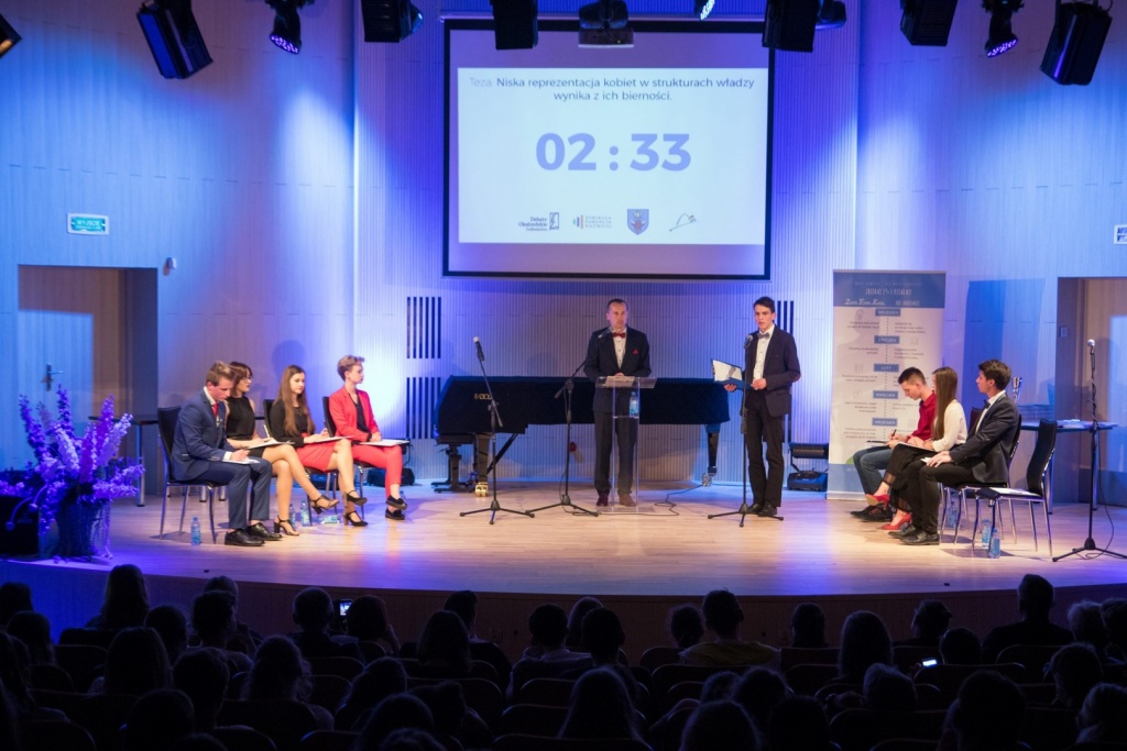 W VI edycji konkursu Debaty Oksfordzkie Podbeskidzie drużyna z Mechanika zwyciężyła w walce na argumenty z drużyną ZSOiT. Na uwagę zasługuje fakt, że jest to czwarte zwycięstwo naszej szkoły w tym turnieju. Konkurs odbył się 24 kwietnia w Sali Koncertowej Państwowej Szkoły Muzycznej. Debatanci, czyli Sebastian Bigos (3aT), Zuzanna Szpoton (2aLO), Arkadiusz Barczyk (3fT), Krzysztof Bizoń (2bT) zmierzyli się z tezą: Niska reprezentacja kobiet w strukturach władzy wynika z ich bierności. Zuza, zadając kłam twierdzeniom o bierności kobiet, zdobyła także tytuł najlepszego mówcy. Po debatach szkół gimnazjalnych i ponagimnazjalnych rozgorzała dyskusja – momentami merytoryczna, momentami dowcipna (rdza na oplu przejdzie do historii ;-)). Gratulujemy zwycięzcom i dziękujemy za godne reprezentowanie szkoły. Dziękujemy także wszystkim, którzy przyczynili się do tego sukcesu!