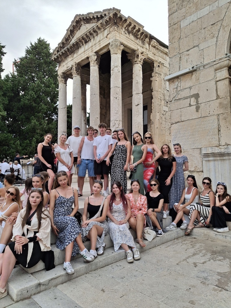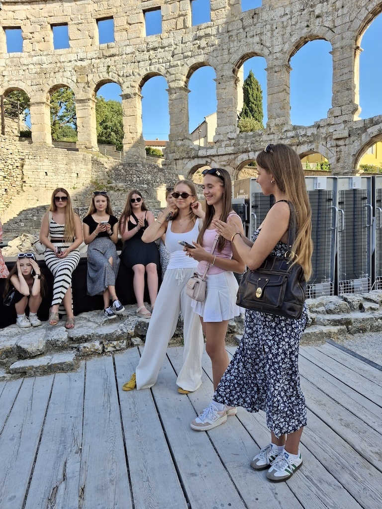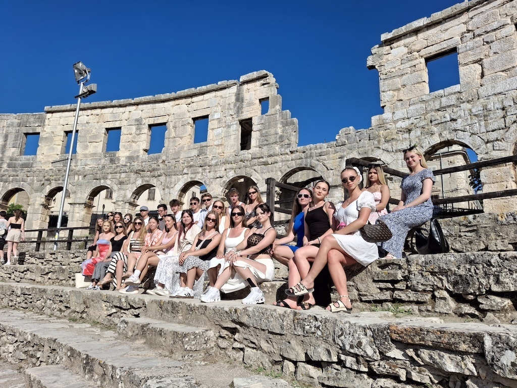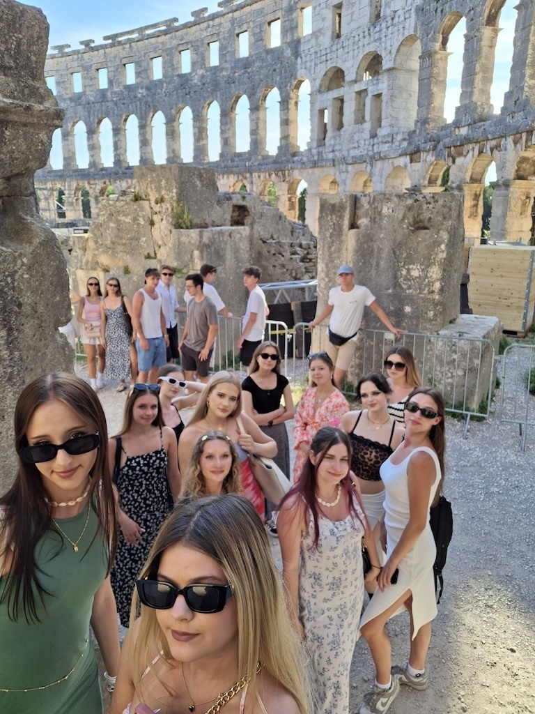 Młodzież miała okazję zobaczyć pozostałości kultury antycznej Puli: Arenę, Forum, Łuk Sergiusza, Świątynię Augusta oraz zamek Kastel.