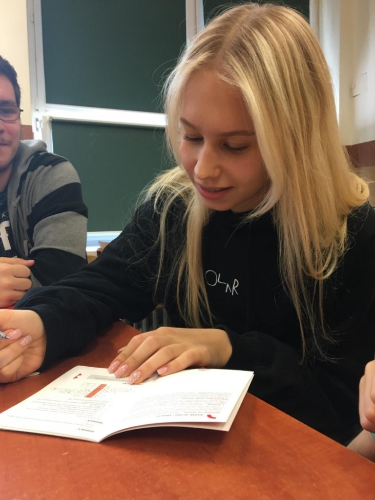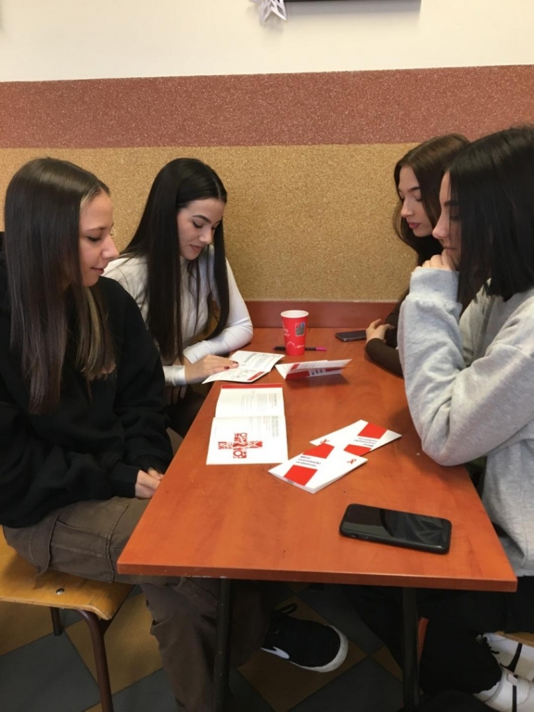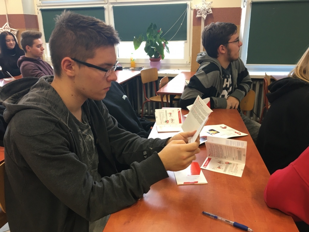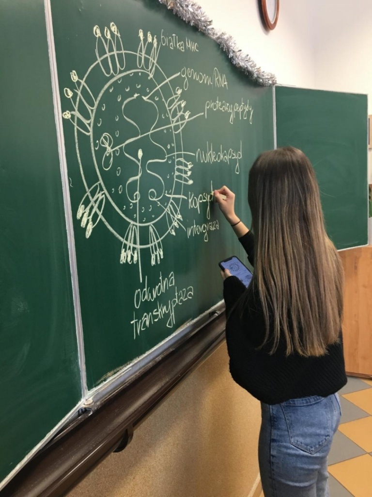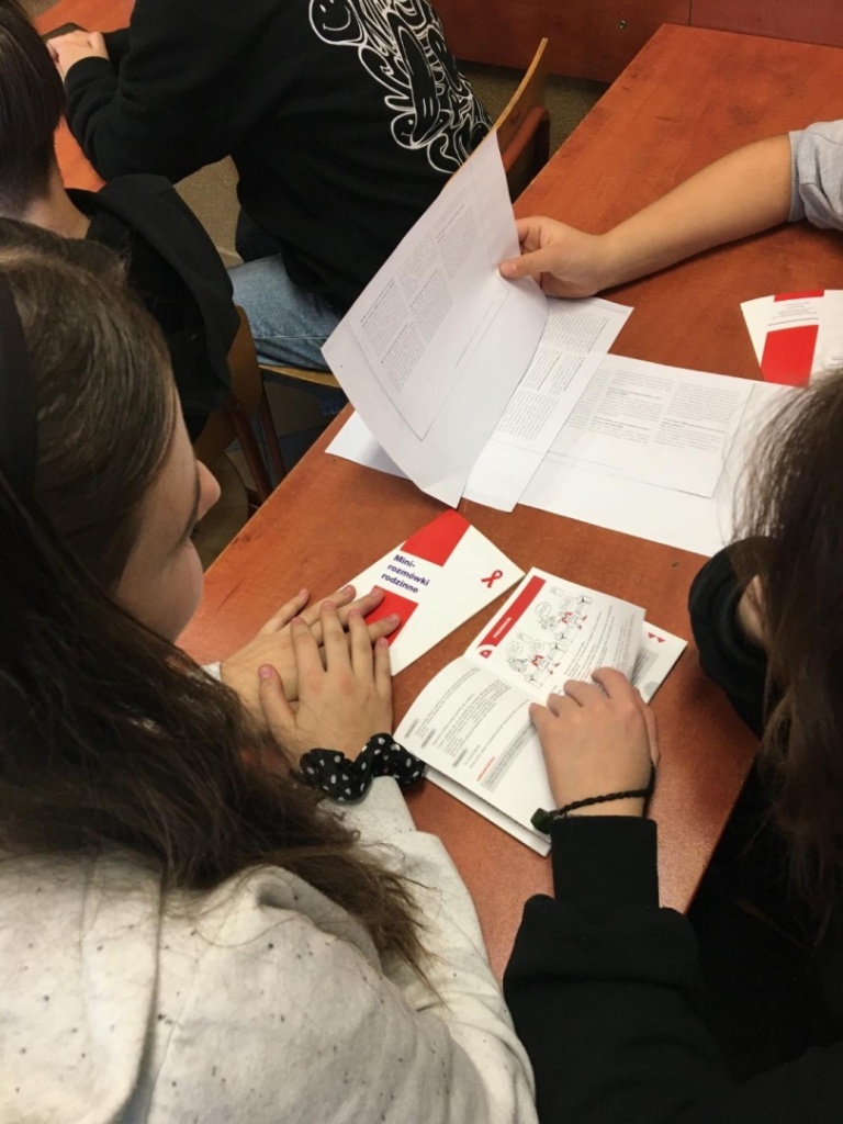 Klasa 2aLO w ramach przedmiotu Anatomia i fizjologia człowieka wzięła udział w lekcji profilaktycznej realizowanej w ramach projektu „Nie daj się HIV – zapobiegaj zakażeniu”. Podczas zajęć uczniowie poznali budowę i patofizjologię wirusa HIV, nauczyli się rozróżniać skróty: HIV/AIDS oraz wzięli udział w quizie: fakty i mity na temat AIDS. Uzupełnieniem lekcji była projekcja filmu „AIDS – epidemia wciąż niepokonana”, który uświadomił młodzieży, że na ryzyko zakażenia HIV narażeni mogą być wszyscy bez względu na wiek, płeć, orientację seksualną, religię i rasę. W kolejnej części zajęć uczniowie pracowali w grupach korzystając z publikacji „Co musisz wiedzieć o HIV i AIDS” i prezentowali informacje między innymi na temat: HIV/AIDS a udzielanie pierwszej pomocy czy występowanie HIV/AIDS u dzieci. W ramach podsumowania zajęć uczniowie rozwiązali krzyżówkę dotyczącą omówionych treści. Młodzież zobowiązała się również do wykonania zadania domowego, które polegało na rozmowie ze starszą osobą w swojej rodzinie na temat ryzyka zakażenia HIV. Prelekcję zorganizowała Anna Sawicka.