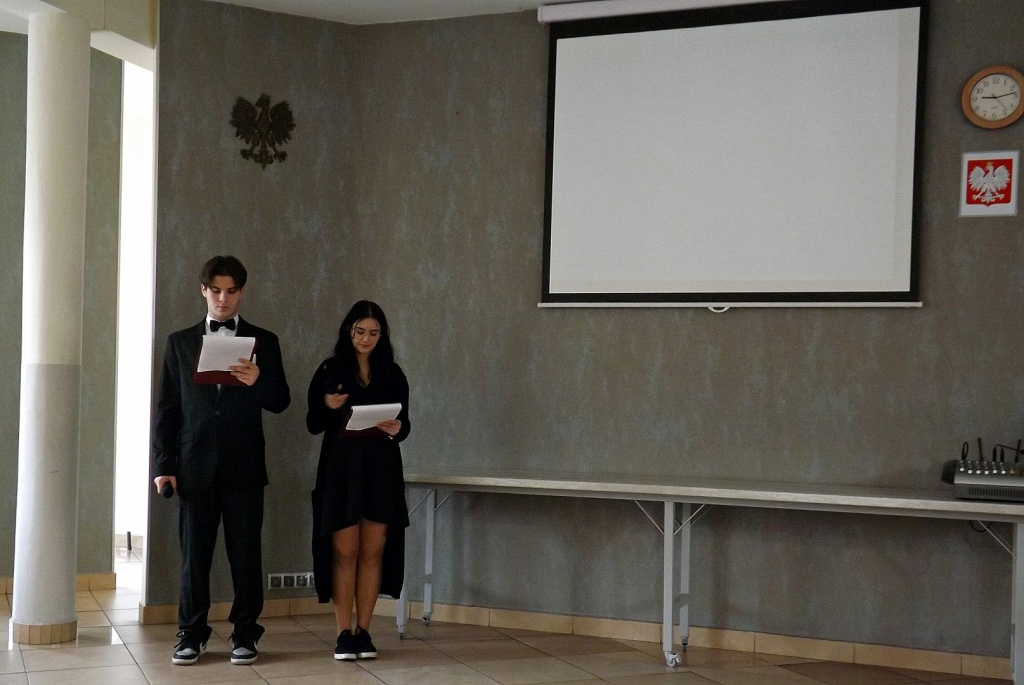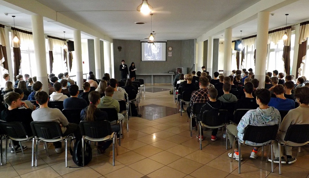 Dokładnie 105 lat temu, 11 listopada 1918 roku, po 123 latach zaborów Polska odzyskała niepodległość. Obchody kolejnej rocznicy, tak ważnego dla wszystkich Polaków Święta Narodowego nie mogły ominąć również i naszej szkoły. Z tej okazji nauczyciele z biblioteki wraz z młodzieżą z 1cLO przygotowali wystawę tematyczną upamiętniającą wydarzenia i postacie związane z odzyskaniem przez Polskę niepodległości. Ponadto, wszyscy uczniowie klas pierwszych mieli okazję posłuchać prelekcji przygotowanej przez mgr Rafała Harańczyka, a prowadzonej przez uczniów (Wiktorią Mrowiec z 1aLO oraz Macieja Tomaszek i Marcina Piątekz 4eT). Wykład podejmował tematykę naszego Święta Narodowego, ze szczególnym uwzględnieniem tragicznych losów naszej ojczyzny a także trudnej drogi do odzyskania niepodległości. Na zakończenie prelekcji, młodzież odśpiewała nasz hymn narodowy.
