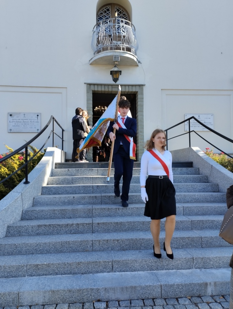 Poczet sztandarowy Szkoły reprezentowali uczniowie klasy 3CO: Anna Gielata, Oliwia Kastelik, Wiktor Wojtarowicz.