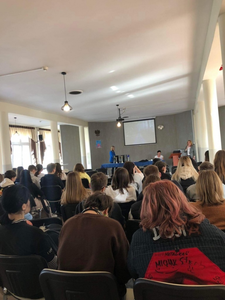 Uczniowie klas 1AO, 1BO, 1CO, 2AO, 2BO, 3AO, 3CO uczestniczyli w zajęciach, prowadzonych przez Panią Agnieszkę Fołtyn – koordynator Bielskiego Centrum Psychiatrii oraz nauczyciela akademickiego ATH Bielsko – Biała na temat budowania poczucia własnej wartości oraz czym jest szczęście? W drugiej części spotkania uczniowie wzięli udział w warsztatach pt. ,,Smutek czy depresja - o depresji inaczej’’