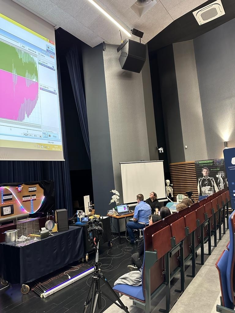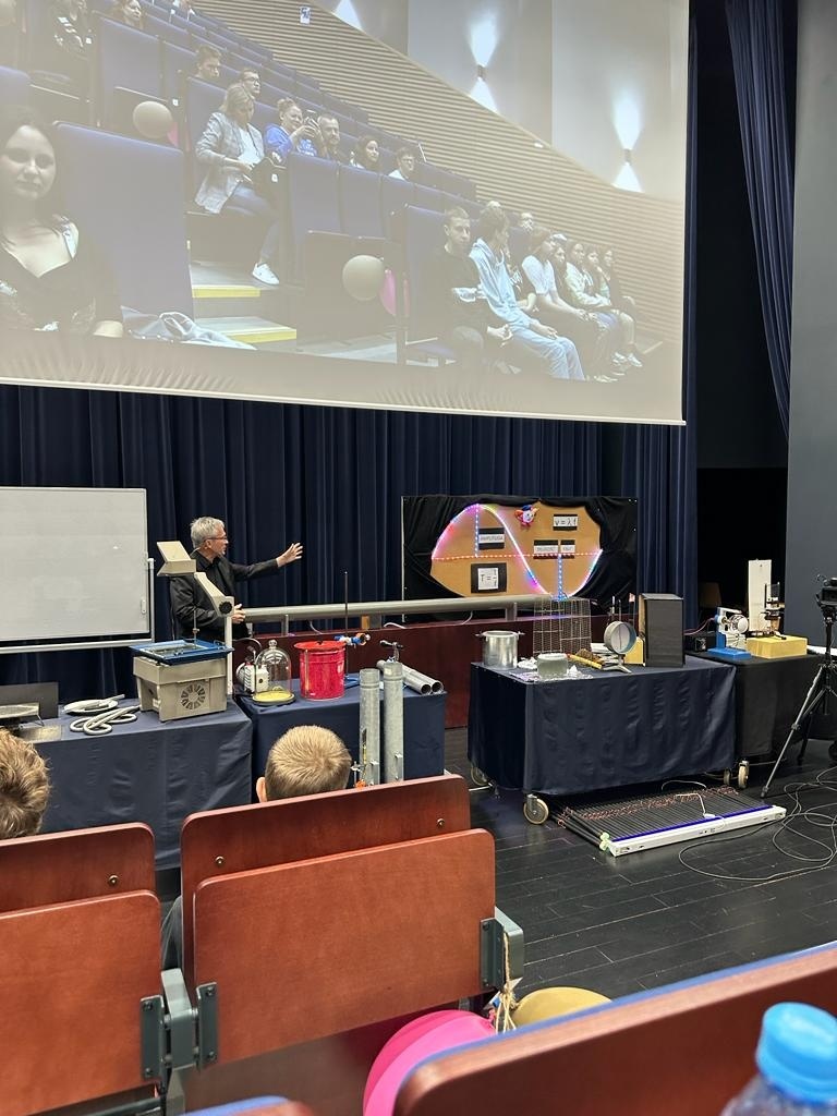 "Osobliwości Świata Fizyki” to wykłady oparte na przeprowadzonych na żywo eksperymentach, prowadzone przez naukowców pracujących na co dzień w laboratoriach Instytutu Fizyki. Koordynatorem tego projektu jest dr prof. UŚ. Jerzy Jarosz. W tym roku wzięliśmy udział w dwóch blokach tematycznych: