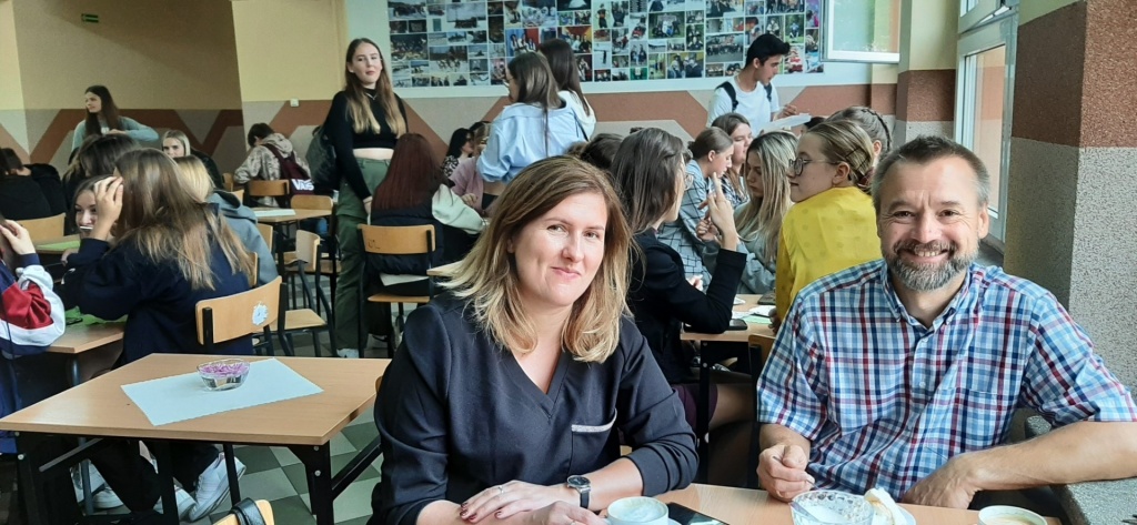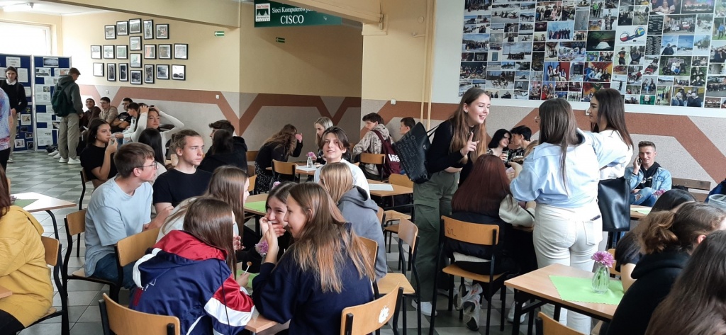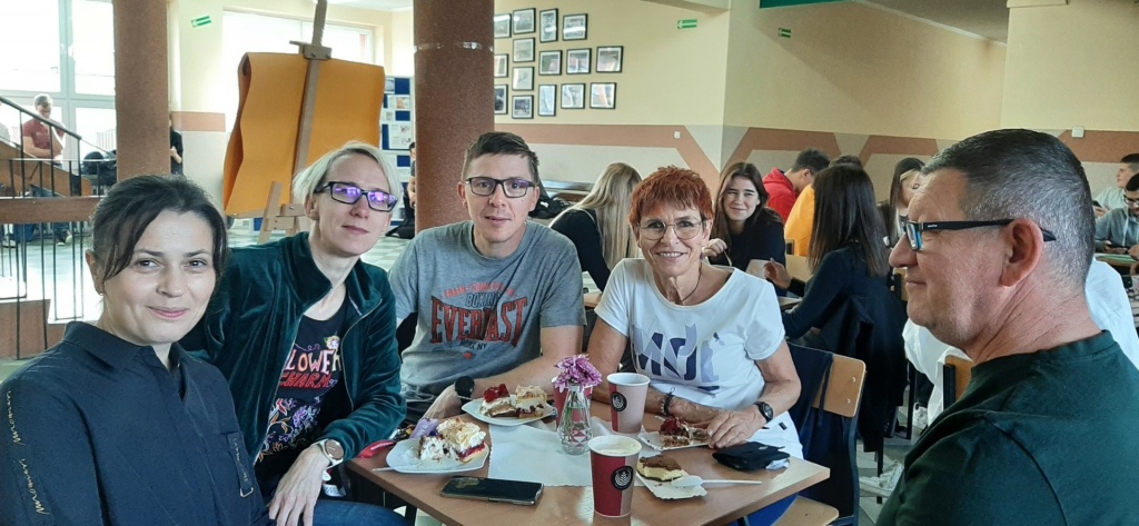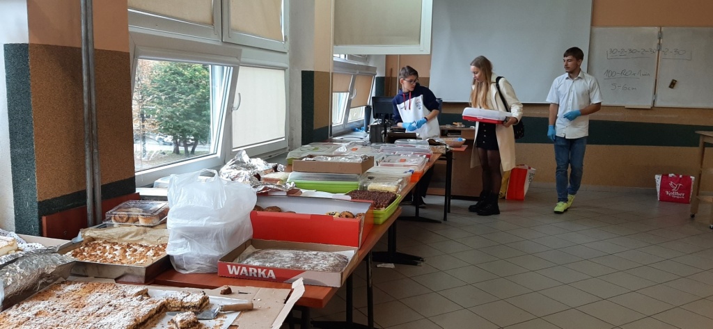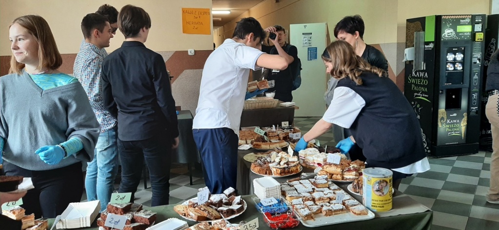 Na pierwszym piętrze tradycyjnie już pojawiła się kawiarenka z wyśmienitymi ciastami, ciasteczkami, słonymi przekąskami oraz herbatą i kawą. Oczywiście słodkości przygotowali uczniowie lub ich rodziny.