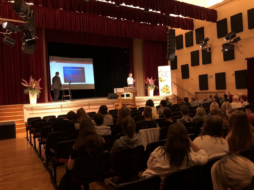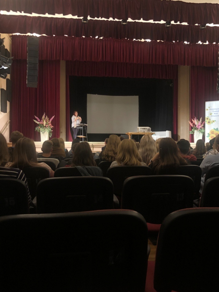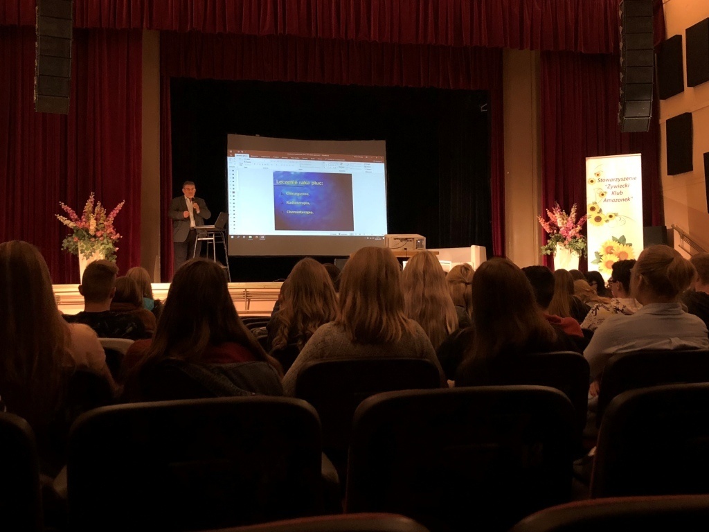 W dniu 28.09. klasy 1a LO i 2c LO wzięły udział w spotkaniu edukacyjno-informacyjnym o tematyce: „Profilaktyka chorób nowotworowych”, zorganizowanym przez Stowarzyszenie Żywiecki Klub Amazonek. Jednym z prowadzących był dr n. med. Rafał Muchacki, który w swojej prezentacji przedstawił przyczyny oraz patofizjologię nowotworów oraz zwrócił uwagę na najważniejsze aspekty profilaktyki tych chorób. Młodzież dowiedziała się, że palenie tytoniu, nadwaga i brak aktywności fizycznej to główne czynniki ryzyka chorób nowotworowych. Prowadzący podzielił się także swoją wiedzą na temat metod chirurgicznego leczenia nowotworów i zaprezentował unikatowe zdjęcia chorych narządów.