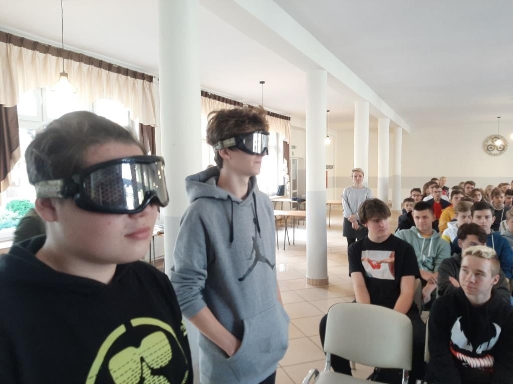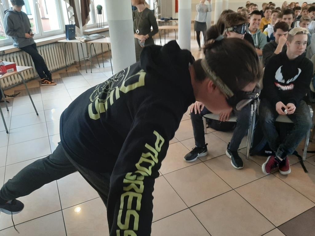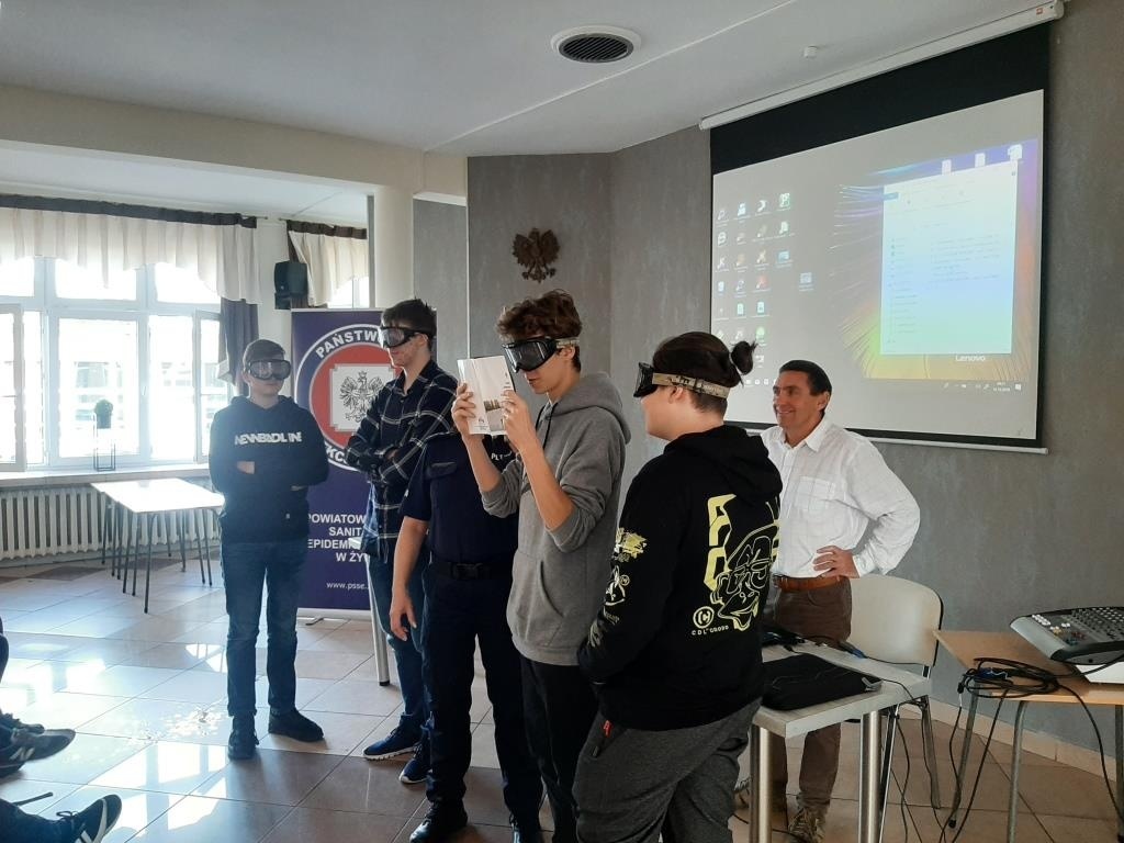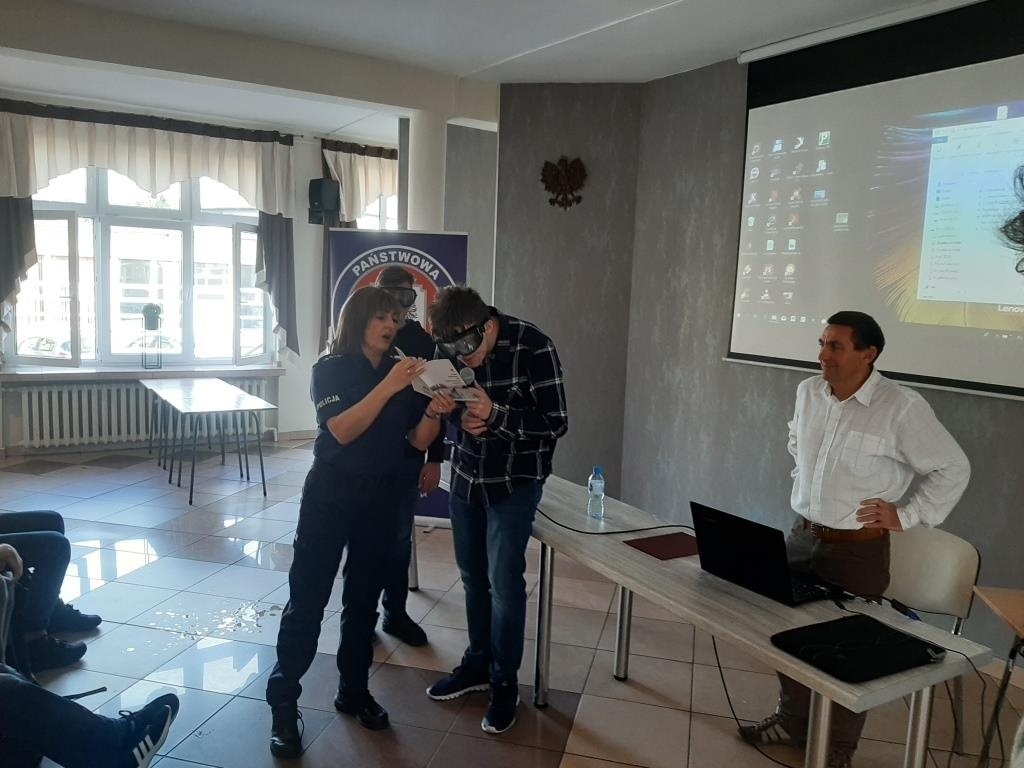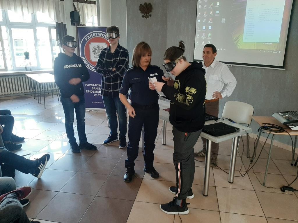 W drugiej części spotkania przedstawicielki Policji Powiatowej w Żywcu przekazały uczniom wiedzę na temat odpowiedzialności za podejmowane przez nich zachowania. Wyjaśniły słuchaczom podstawowe definicje związane z pojęciami nieletniego, czynu karalnego, demoralizacji oraz omówiły zagadnienie cyberprzemocy. Treści teoretyczne zostały wzbogacone projekcją krótkich filmów profilaktycznych, przedstawiających skutki dokonywania przez młodych ludzi niewłaściwych wyborów. Na koniec odbyły się warsztaty z wykorzystaniem alko i narkogoogli dzięki którym uczestnicy spotkania mogli zobaczyć jak zmienia się percepcja po spożyciu alkoholu lub narkotyków.