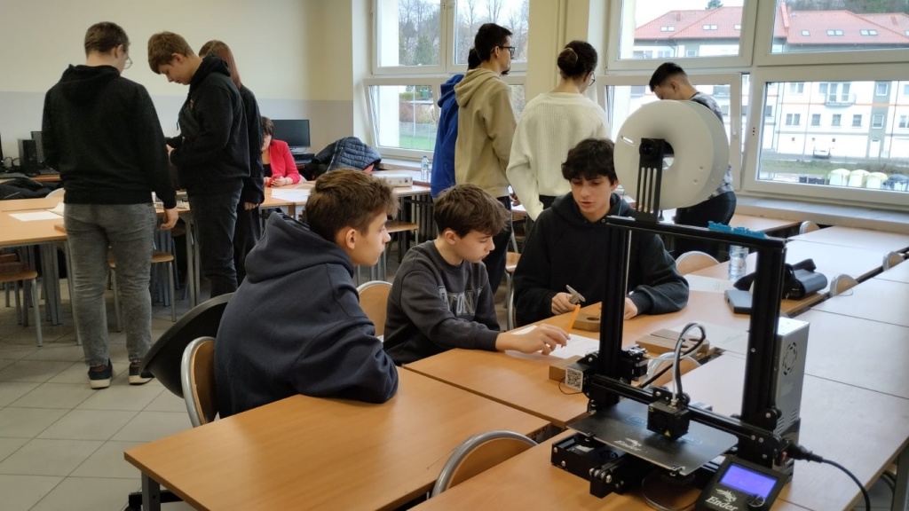 Uczniowie klasy 8 poznali specyfikę zawodu Technik Mechanik oraz mogli samodzielnie wykonać ćwiczenia związane z projektowaniem w nowoczesnych programach takich jak Auto Cad i Inwentor, przeprowadzić pomiary za pomocą nowoczesnych przyrządów oraz poznać tajniki wydruku 3D.
