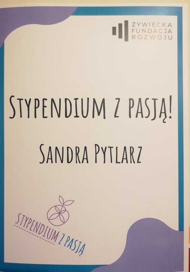 Celem programu stypendialnego Stypendium z pasją jest wspieranie mieszkańców Żywiecczyzny w rozwoju ich niezwykłych pasji. To szansa dla ambitnych, zdolnych, pełnych pasji i determinacji osób. W tym roku Gala Wręczenia stypendiów odbyła się 30 maja, a w gronie laureatów znalazła się nasza uzdolniona uczennica Sandra Pytlarz z klasy 1 BLO.