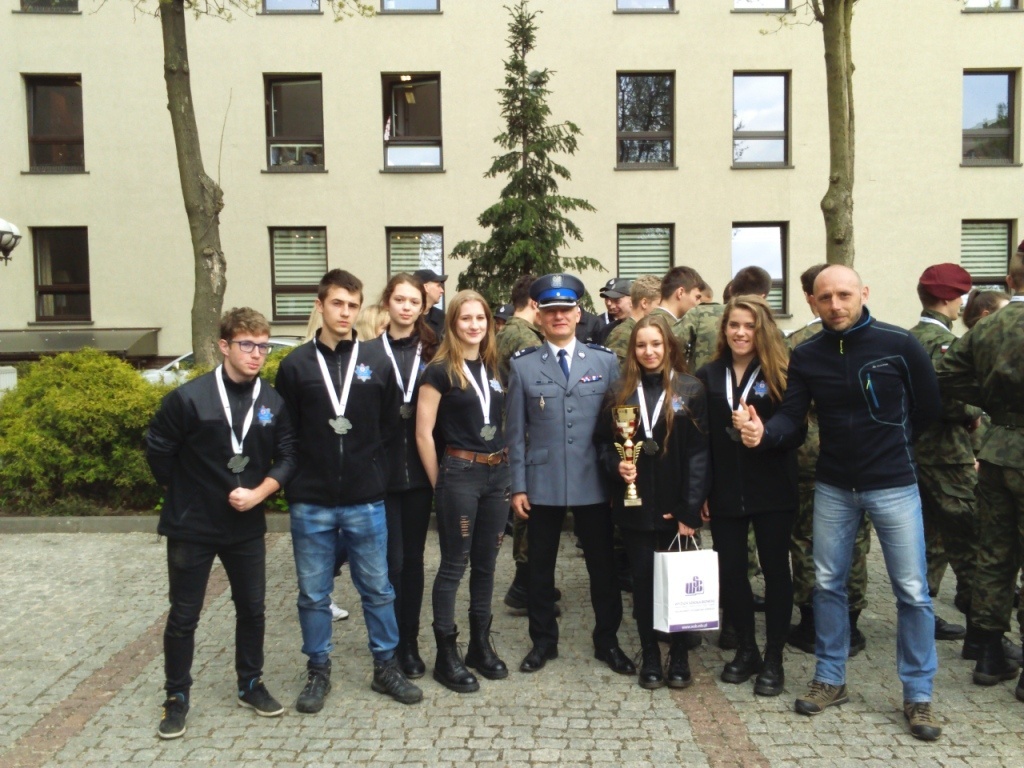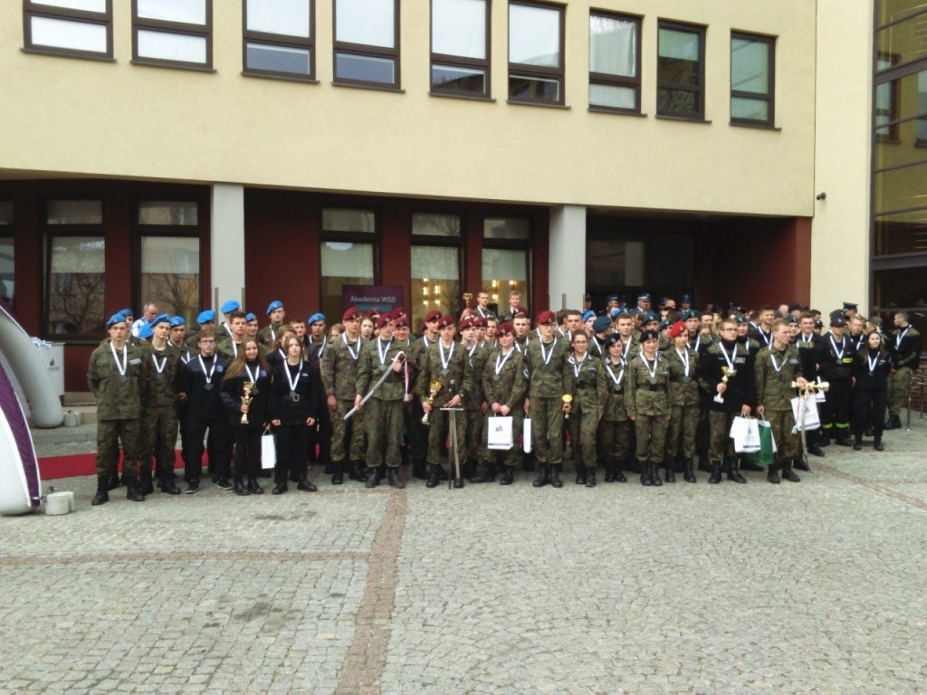 W dniach 16 – 17 kwietnia odbyła się siódma edycja Ogólnopolskiego Turnieju Klas Mundurowych organizowanego przez Wyższą Szkołę Biznesu w Dąbrowie Górniczej. Celem tego przedsięwzięcia jest wyłonienie najlepszych uczestników reprezentujących szkołę średnią, realizującą przedmiot Edukacja dla bezpieczeństwa oraz przygotowującą potencjalnych kandydatów do pracy w służbach mundurowych. W tegorocznej edycji w zmaganiach wzięło udział ponad 130 uczestników reprezentujących szkoły z siedmiu województw, więc konkurencja duża, podobnie jak chęć osiągnięcia sukcesu, na którego apetyt zwiększyło zwycięstwo drużyny dziewcząt z naszej szkoły w poprzednim roku. Nie było to łatwe, na startujących – jak i w ostatnich latach - czekały wyczerpujące konkurencje. Najbardziej efektowną był bieg „Masakrator”, odbywający się na 7 kilometrowej pętli wokół jeziora Pogoria, w trakcie którego zawodnicy musieli pokonać 25 przeszkód, choćby takich jak: przeciąganie 35 kilogramowej trylinki, bieg w lodowatej wodzie, pokonywanie ponad 2,5 metrowych ścianek czy wreszcie podjęcie próby przebicia się przez szereg amerykańskich futbolistów. Drugi dzień turnieju rozpoczął się na strzelnicy w Siemianowicach Śląskich. Uczestnicy zmierzyli się w trzech konkurencjach – strzeleckiej, udzielaniu pierwszej pomocy oraz rozwinięciu gaśniczym. Oczywiście nie liczyła się tylko sprawność i siła, młodzież musiała również zaliczyć test sprawdzający wiedzę z zakresu uprawnień służb mundurowych i sił zbrojnych RP.