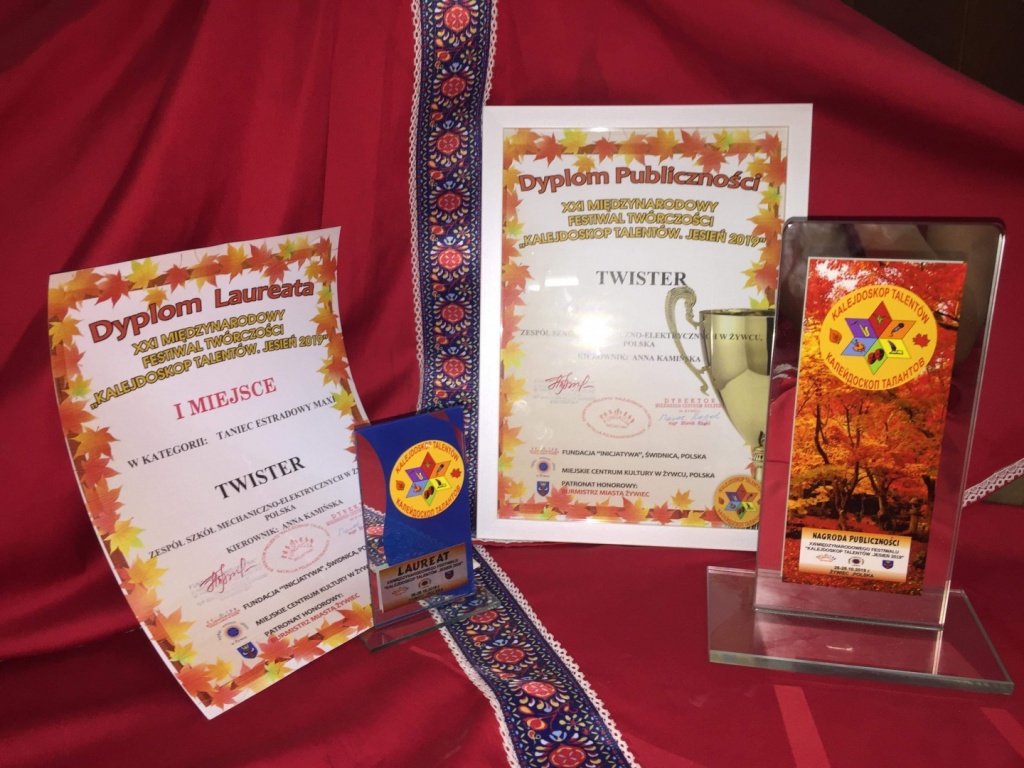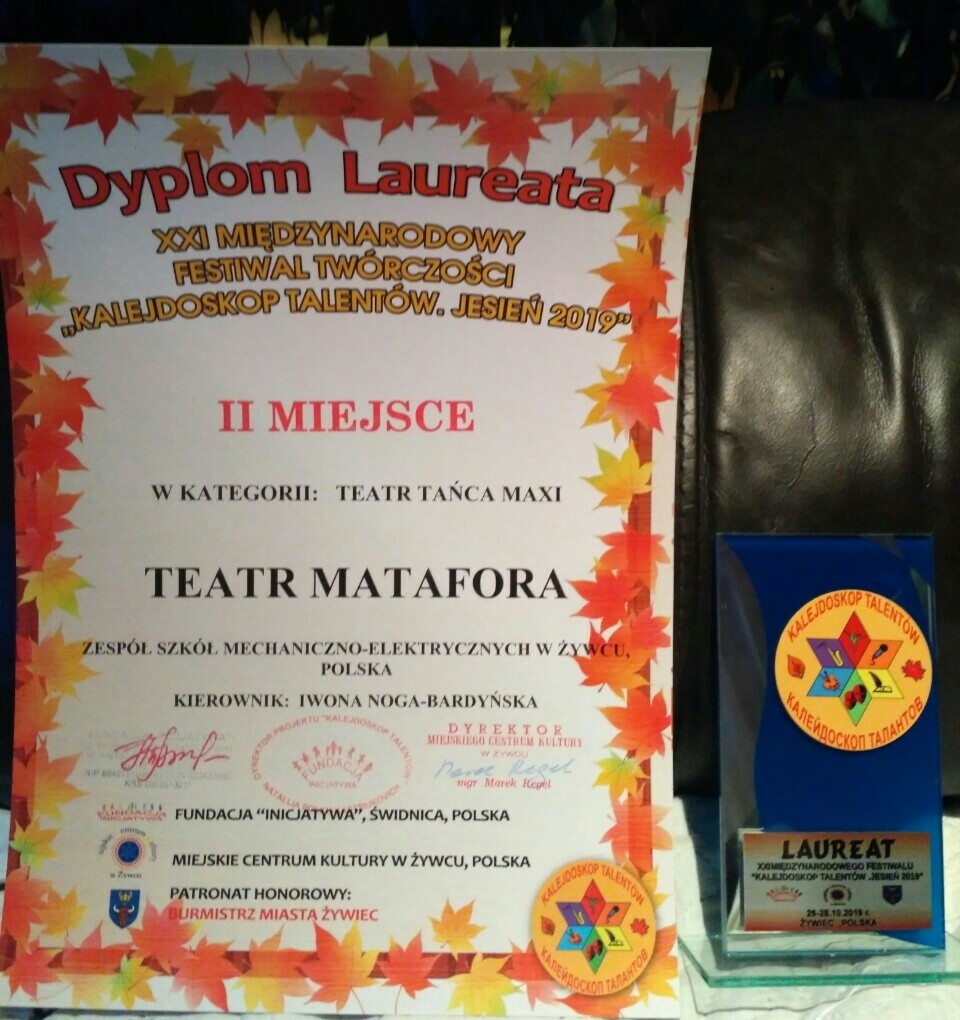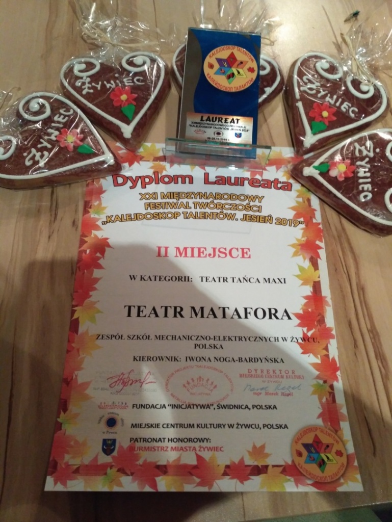 Formacja Twister oraz grupa teatralna Matafora kolejnymi sukcesami zakończyły swoje występy w jesiennej edycji Międzynarodowego Festiwalu Twórczości "Kalejdoskop Talentów", który odbywał się w dniach 26-28.10.2019 w Miejskim Centrum Kultury w Żywcu.