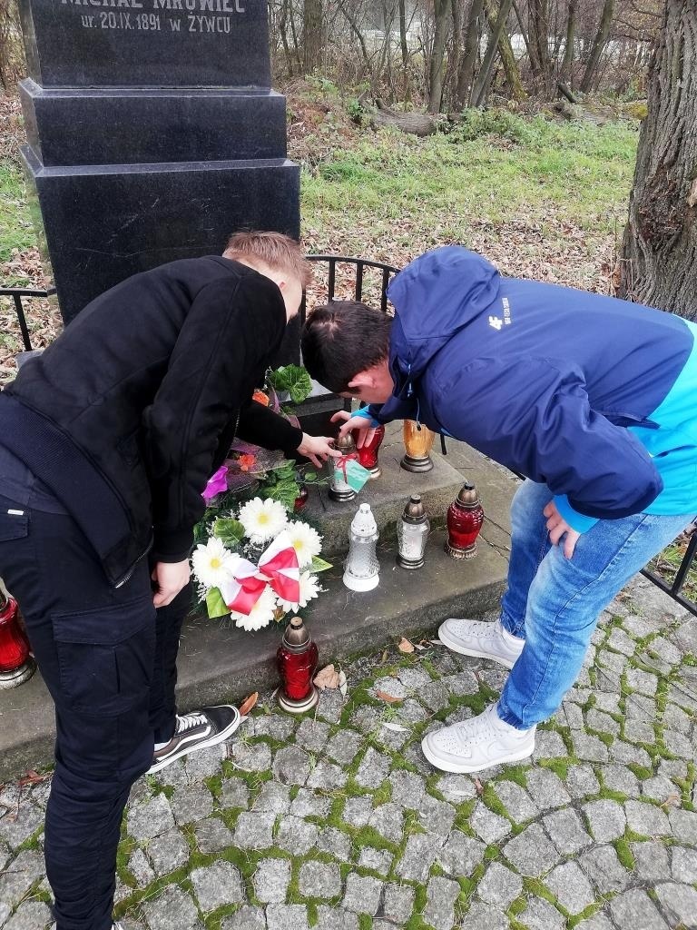 Całość naszej akcji dopełniło zapalenie zniczy na Cmentarzu Przemienienia Pańskiego w Żywcu, gdzie znajdują się mogiły poświęcone pamięci osób pomordowanych w Katyniu, w nazistowskich obozach zagłady, a także tych, którzy zginęli na frontach I i II wojny światowej.