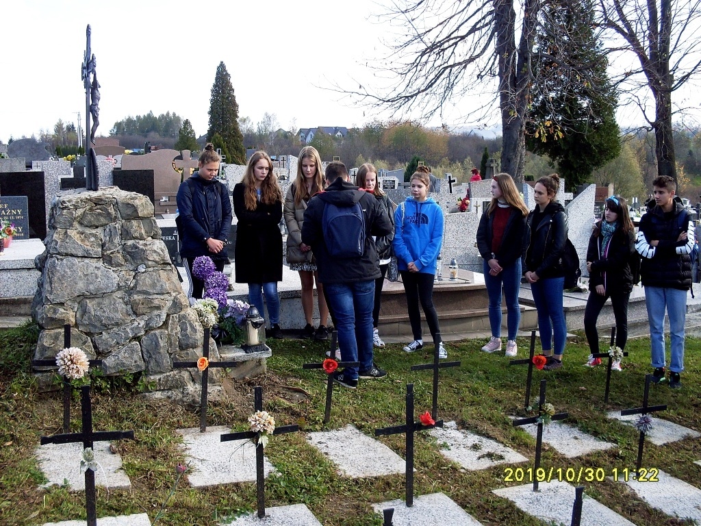 W ubiegłym tygodniu, w związku ze zbliżającym się Dniem Wszystkich Świętych uczniowie naszej szkoły jak co roku odwiedzili kilka miejsc pamięci w Żywcu i okolicach. Cykliczna już akcja ma na celu nie tylko przypomnienie bohaterów tamtych dni, ale również upamiętnienie miejsc zbiorowych egzekucji, stoczonych walk oraz uczczenie pamięci poległych osób. Przy każdym z obiektów młodzież zapaliła znicz ze specjalną dedykacją wykonaną przez naszych uczniów (pod opieką mgr Wiesławy Widz), na znak pamięci o tych, którzy oddali życie za wolność ojczyzny. W ramach akcji uczniowie odwiedzili obiekty leżące w następujących miejscowościach:
