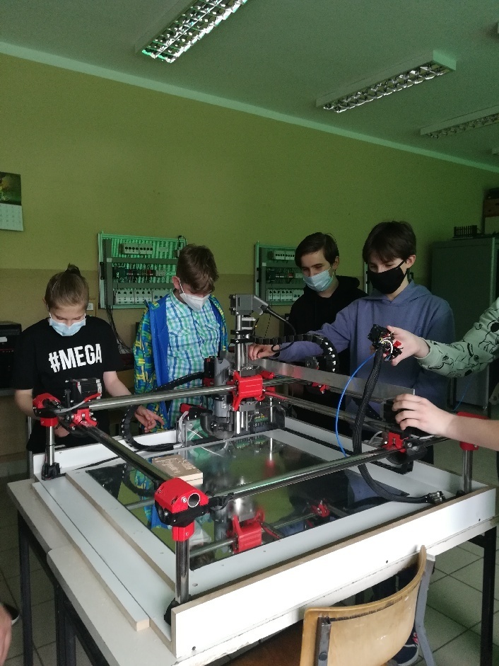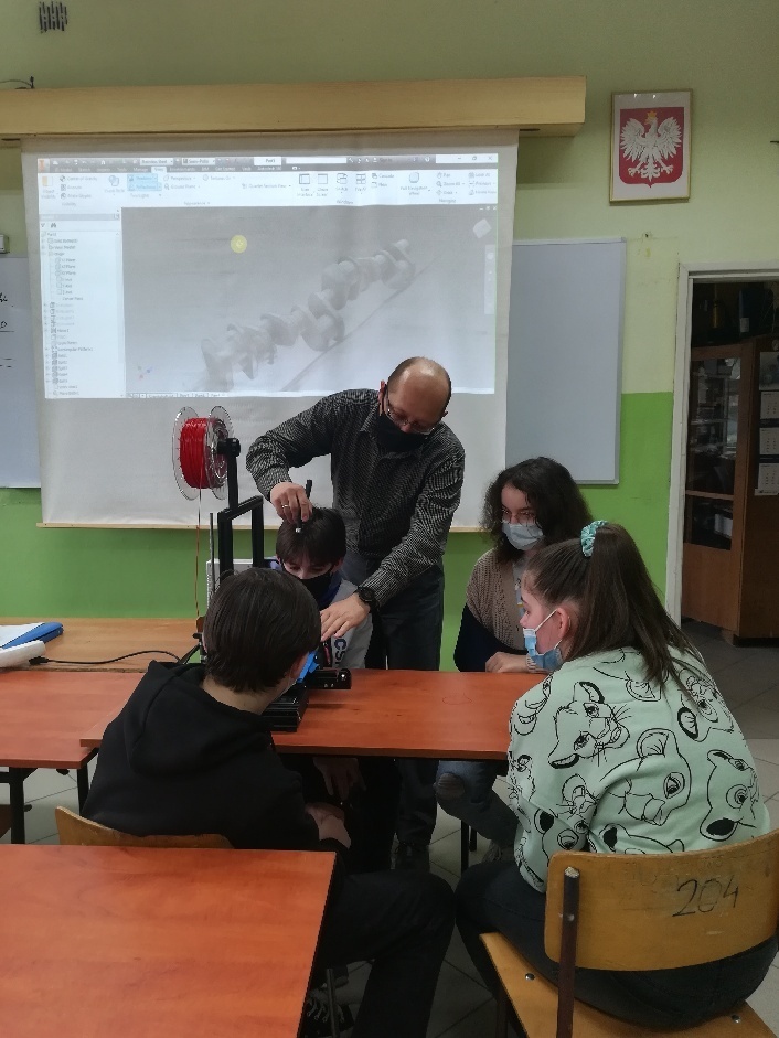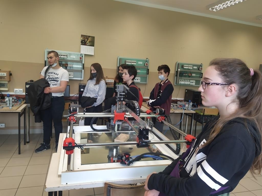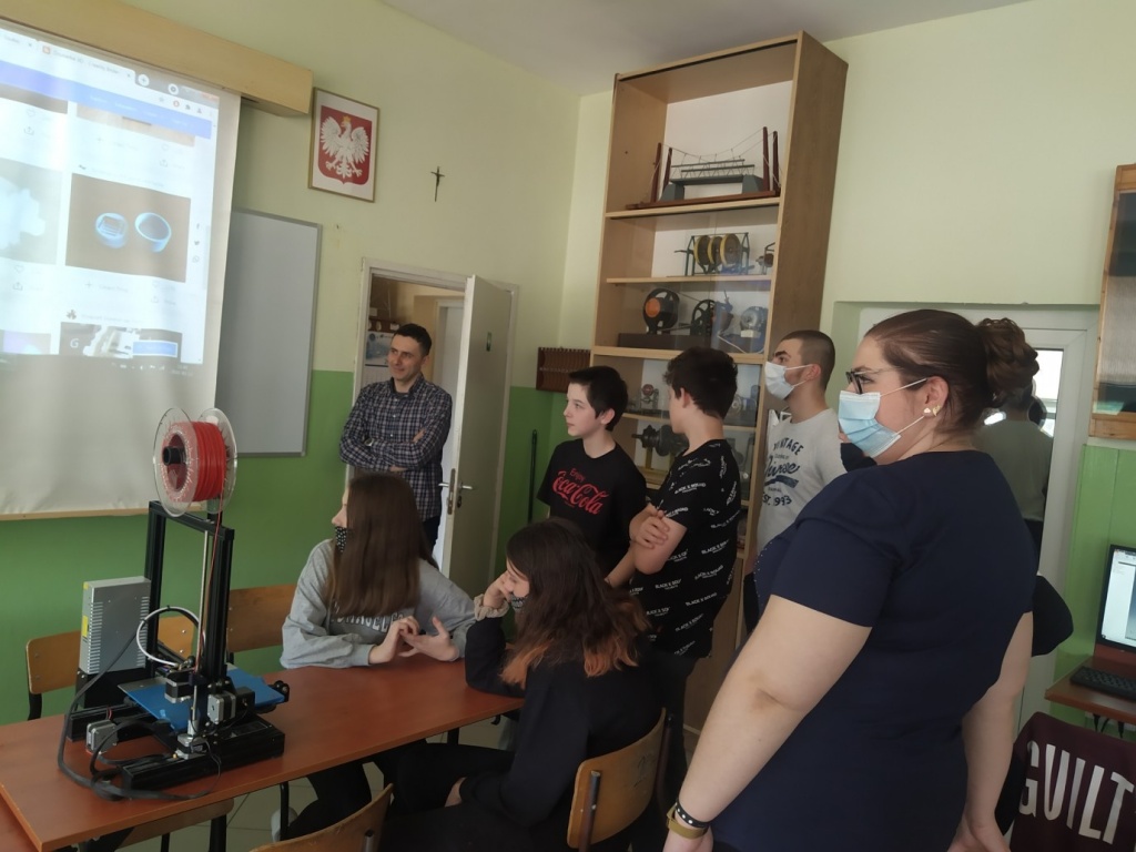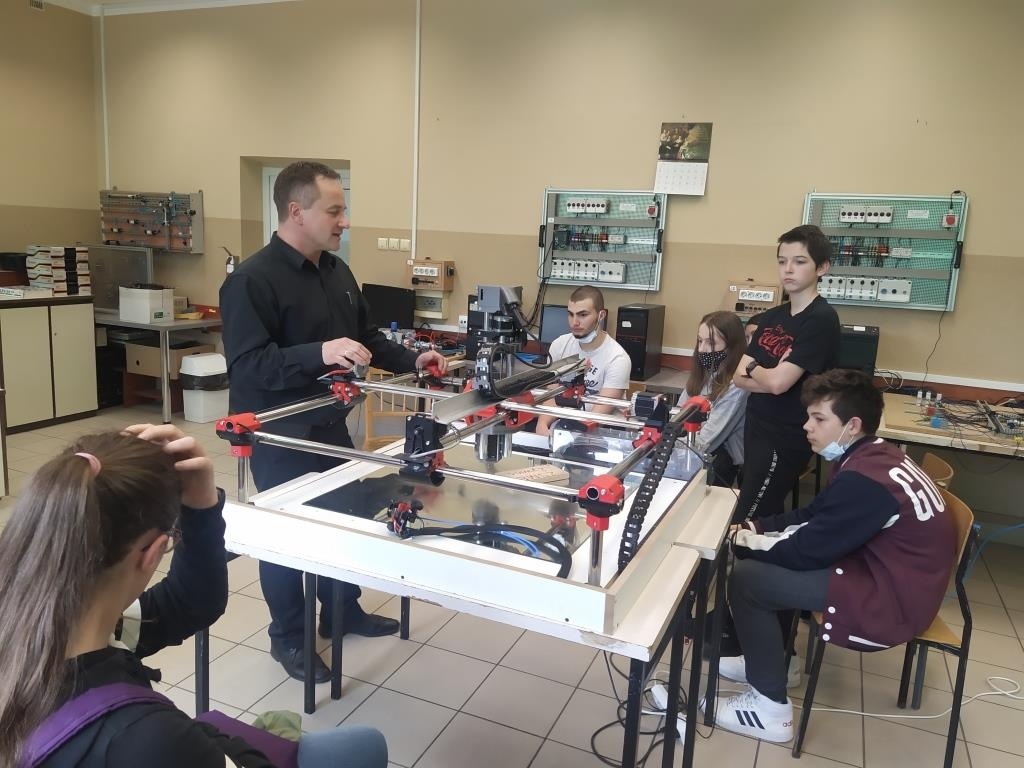 Warsztaty prowadzili nauczyciele naszej szkoły: mgr inż. Piotr Nowak (modelowanie CAD i drukowanie 3D), oraz mgr inż. Leszek Szpila (automatyka i robotyka).