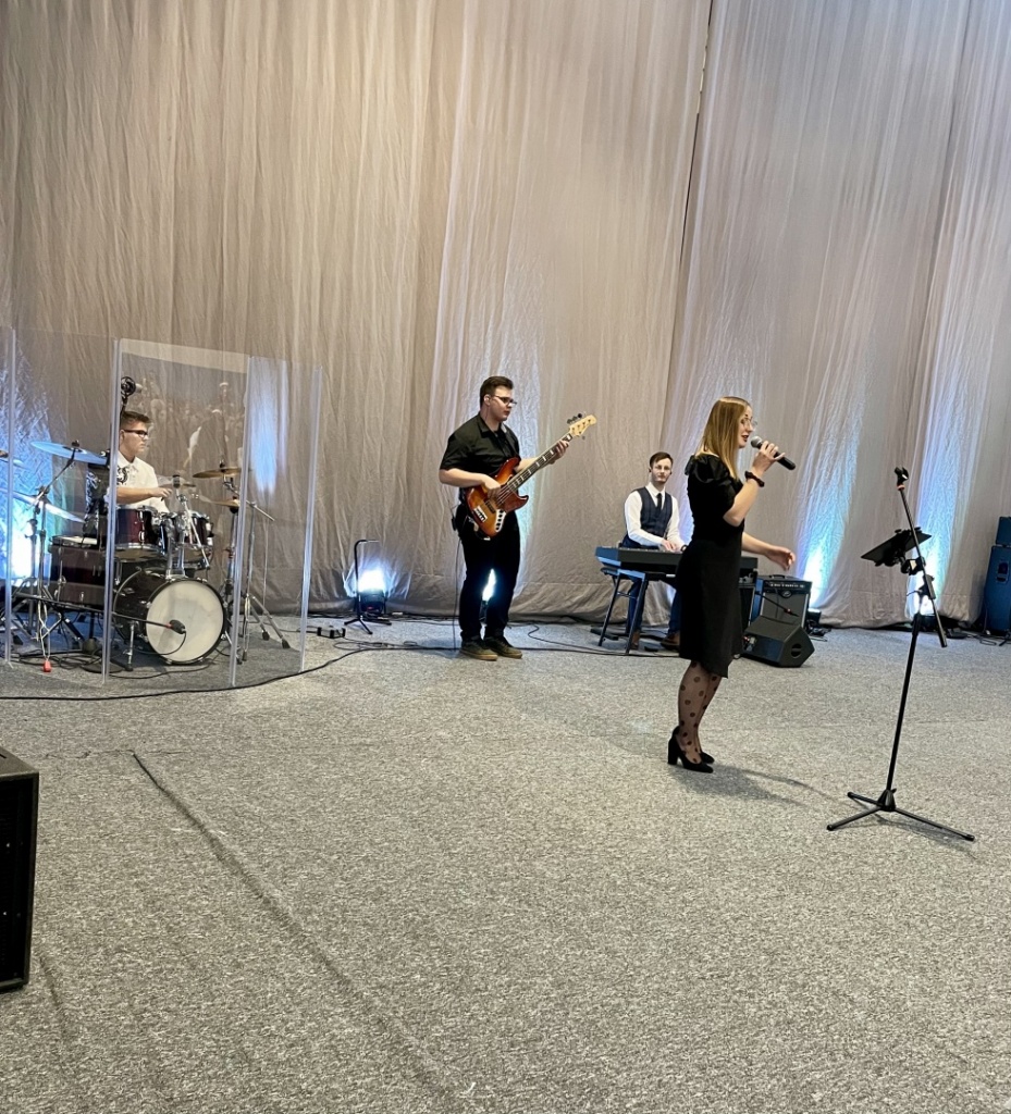 Szkolna Grupa Muzyczna w składzie: Sandra Pytlarz, Kuba Hodurek, Konrad Lach, Kacper Kuś, Kuba Flaka