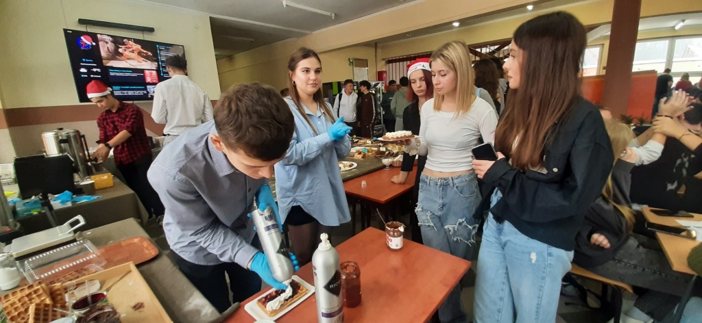 Na pierwszym piętrze tradycyjnie już pojawiła się kawiarenka z wyśmienitymi ciastami, ciasteczkami, słonymi przekąskami oraz herbatą i kawą. Oczywiście słodkości przygotowali uczniowie lub ich rodziny.