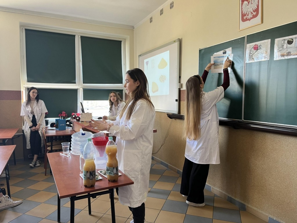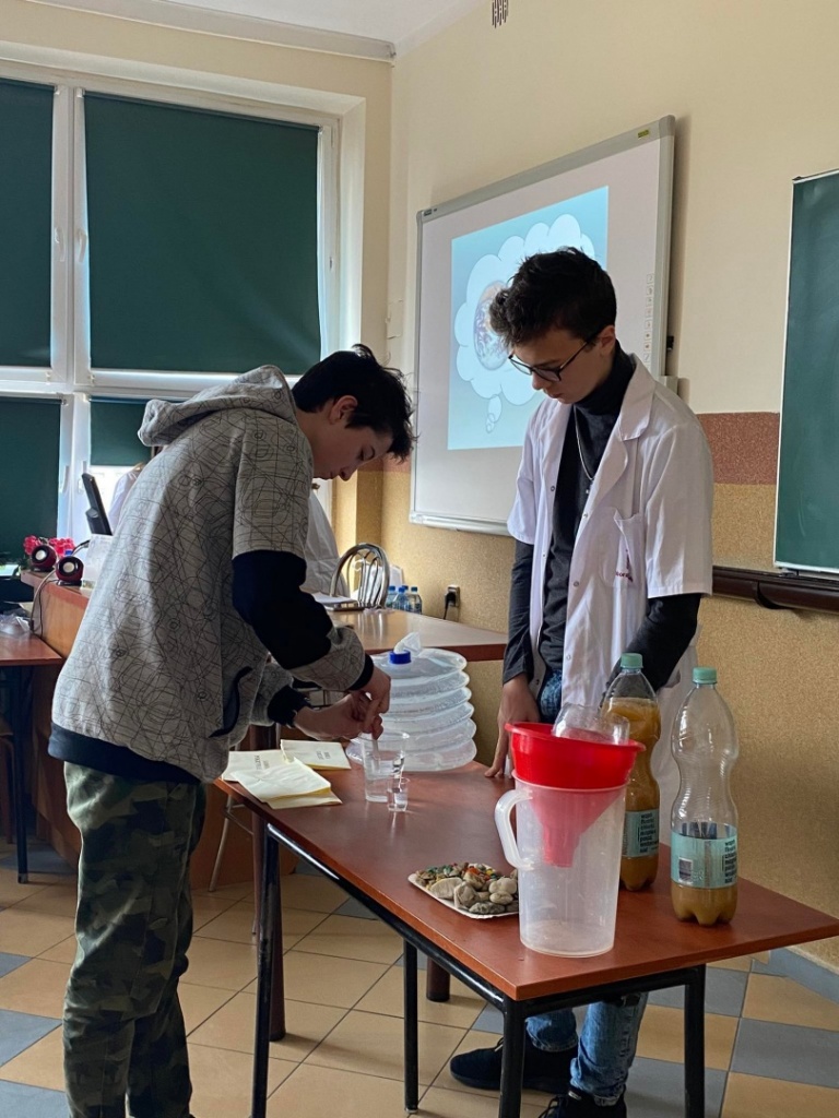 Właśnie z tej okazji, w klasach pierwszych zostały przeprowadzone zajęcia warsztatowe w ramach naszego autorskiego projektu „Woda źródłem życia”, który już od 3 lat cieszy się popularnością w naszej szkole oraz szkołach podstawowych powiatu żywieckiego.