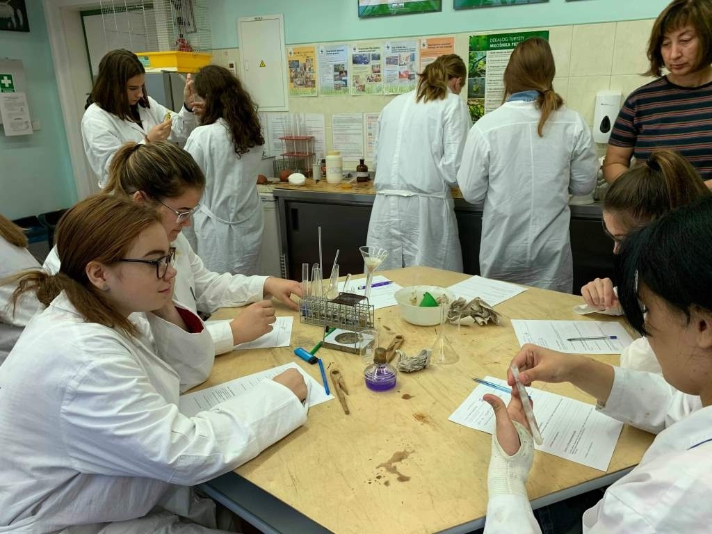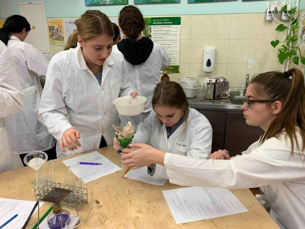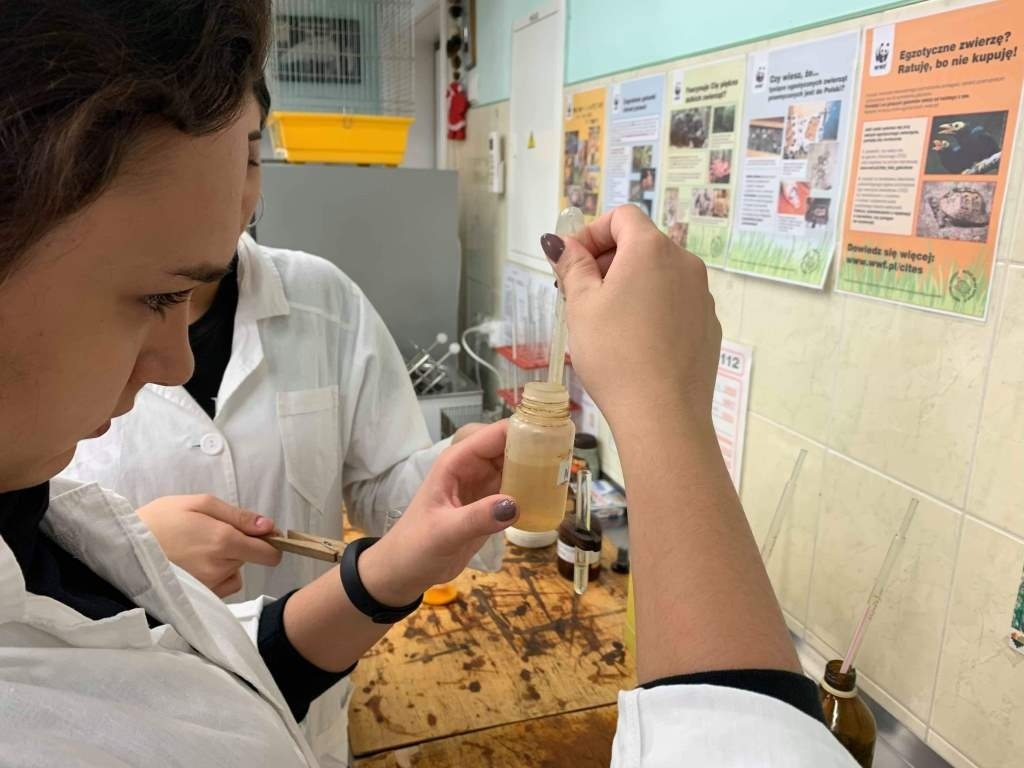 24. października uczniowie klasy 1aLOg wzięli udział w warsztatach laboratoryjnych z biologii, zorganizowanych przez Pałac Młodzieży w Katowicach. Przedmiotem zajęć było wykrywanie białek oraz obserwacje mikroskopowe. W trakcie laboratoriów uczniowie oglądali pod mikroskopem preparaty różnych organelli komórkowych, a następnie rysowali je na kartce. W drugiej części warsztatów uczestnicy wysłuchali krótkiego wykładu na temat budowy i funkcji białek, a następnie samodzielnie wykonywali doświadczenia, pozwalające wykryć białka za pomocą reakcji biuretowej oraz ksantoproteinowej. Warsztaty niewątpliwie wzbogaciły wiedzę uczniów, a doświadczenia, które wykonywali pokazały ciekawy aspekt nauki biologii.