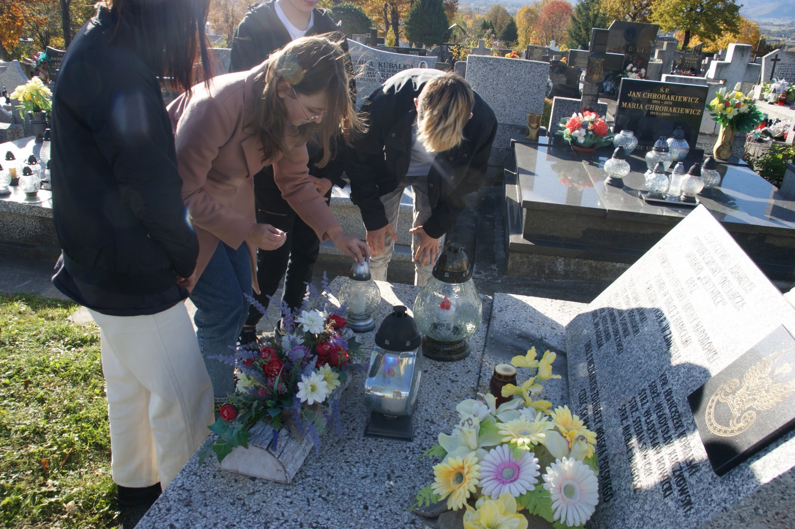 Tradycyjnie 24 października uczniowie naszej szkoły wzięli udział w ogólnopolskiej akcji „ Zapal znicz pamięci”. Pomysłodawcami przedsięwzięcia są Instytut Pamięci Narodowej i Polskie Radio. Łącznie znicze pamięci zapalono w kilkuset miejscach kaźni na terenie pięciu regionów: w Wielkopolsce, na Pomorzu, Śląsku, Ziemi Łódzkiej i Ciechanowskiej. Poza przypominaniem bohaterów tamtych dni organizatorzy akcji, IPN i Polskie Radio, chcieli przypominać też o warunkach, jakie panowały na terenach wcielonych do III Rzeszy. Pod groźbą surowych kar zakazywano wówczas używania języka polskiego, polskich nazw i ulic. Nie można było brać udziału w życiu kulturalnym, chodzić do opery, teatru czy nawet parku. Od pierwszego dnia agresji niemieckiej w 1939 roku terror i egzekucje były codziennym doświadczeniem Polaków – mieszkańców tych ziem. Niemcy wprowadzili tu znacznie większe represje niż na terenie Generalnego Gubernatorstwa. Tylko do końca 1939 roku na Zachodnich Kresach Rzeczypospolitej zamordowali 40 tysięcy osób, przedstawicieli polskich elit, a głód, terror i eksterminacja stały się przez kolejne lata codziennym doświadczeniem mieszkańców. Była to część większej operacji mającej na celu eksterminację polskich elit i w konsekwencji pozbawienie Polski inteligencji i przywódców. W tegorocznej akcji „Zapal znicz pamięci” udział wzięli uczniowie kółka historycznego, którzy na cmentarzu Przemienia Pańskiego przy pomniku żołnierzy poległych w pierwszych dniach września 1939 roku zapalili znicz pamięci. Warto podkreślić, że w potyczce stoczonej z wojskiem niemieckim, na terenie nieistniejącego już Zadziela, zginęło 14 żołnierzy Korpusu Ochrony Pogranicza.