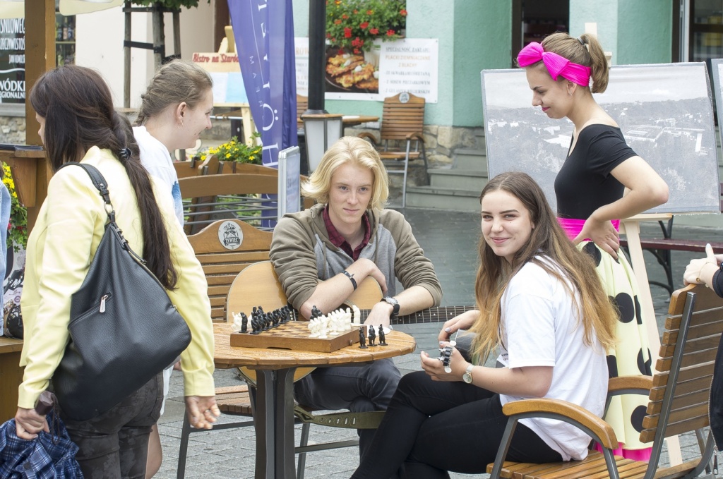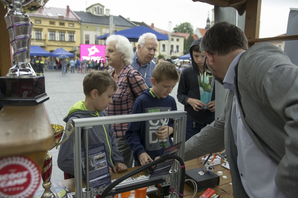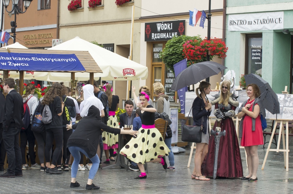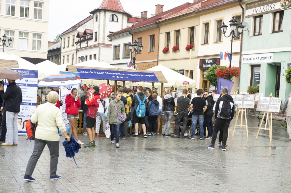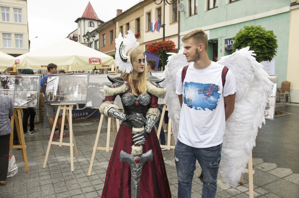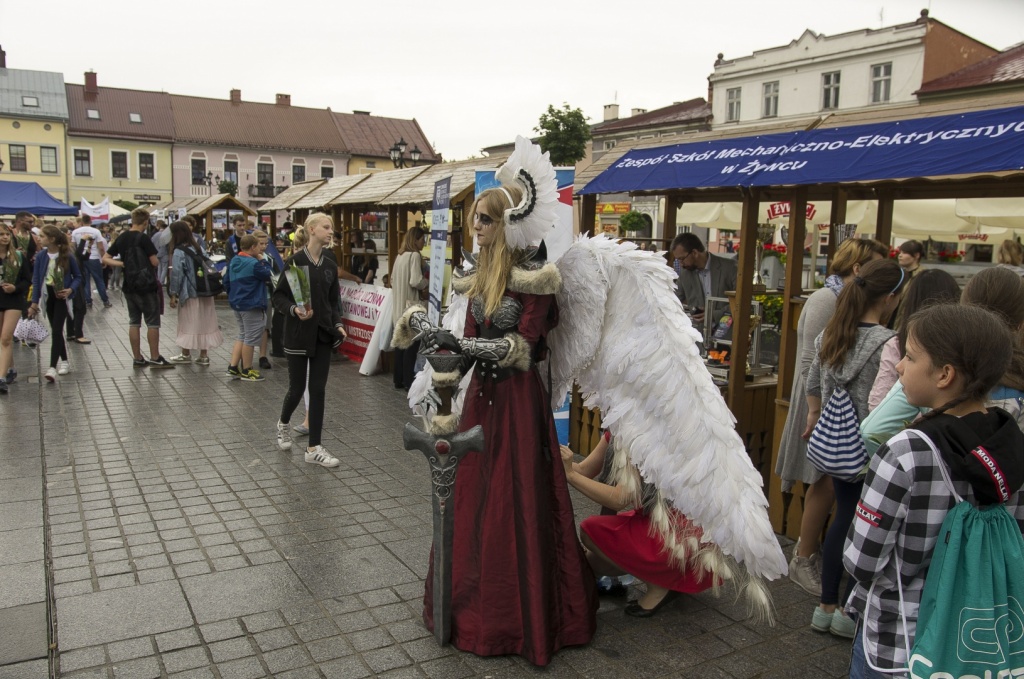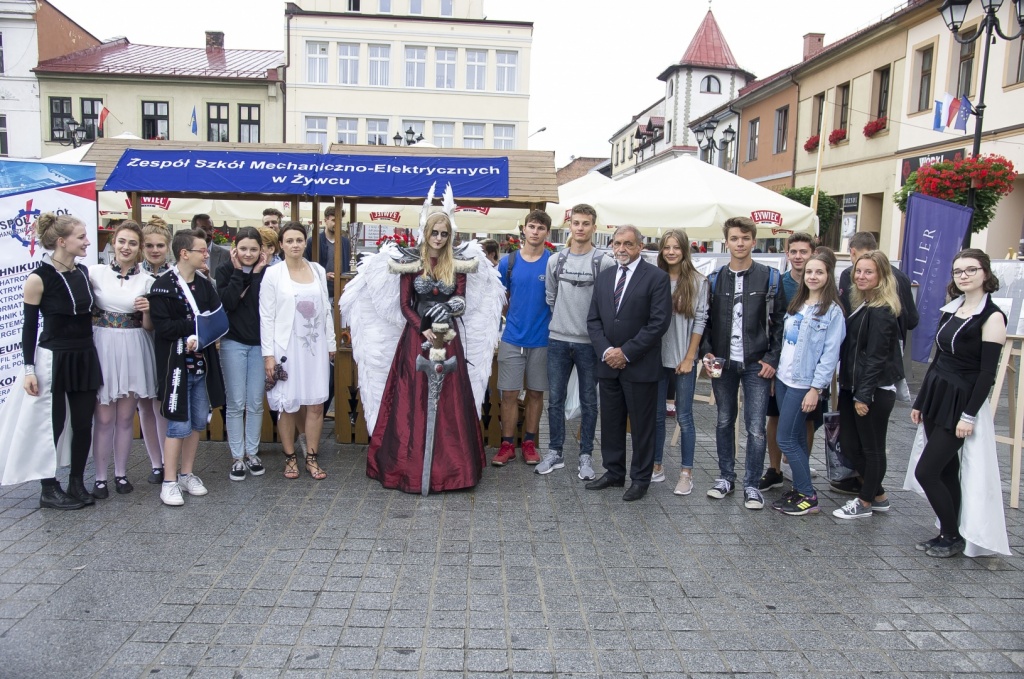 Obok występów artystycznych, nasza Szkoła miała atrakcyjnie przygotowane stanowisko, które zachęcało drukarką 3D, prezentacją układów elektrycznych oraz zdrową żywnością. Ponadto można było rozegrać partie szachów z wicemistrzemPolski Nauczycieli Danielem Pietraszko oraz zobaczyć zmagania grupy ratowniczej, szkoda że tylko z pogodą. Jednak największąatrakcją okazała się JuliaŻuławska, uczennica klasy 2cT, która w niesamowitym, własnoręcznie wykonanym stroju wojowniczkiWalkirii, przyciągała uwagę wszystkich zgromadzonych na żywieckim Rynku.