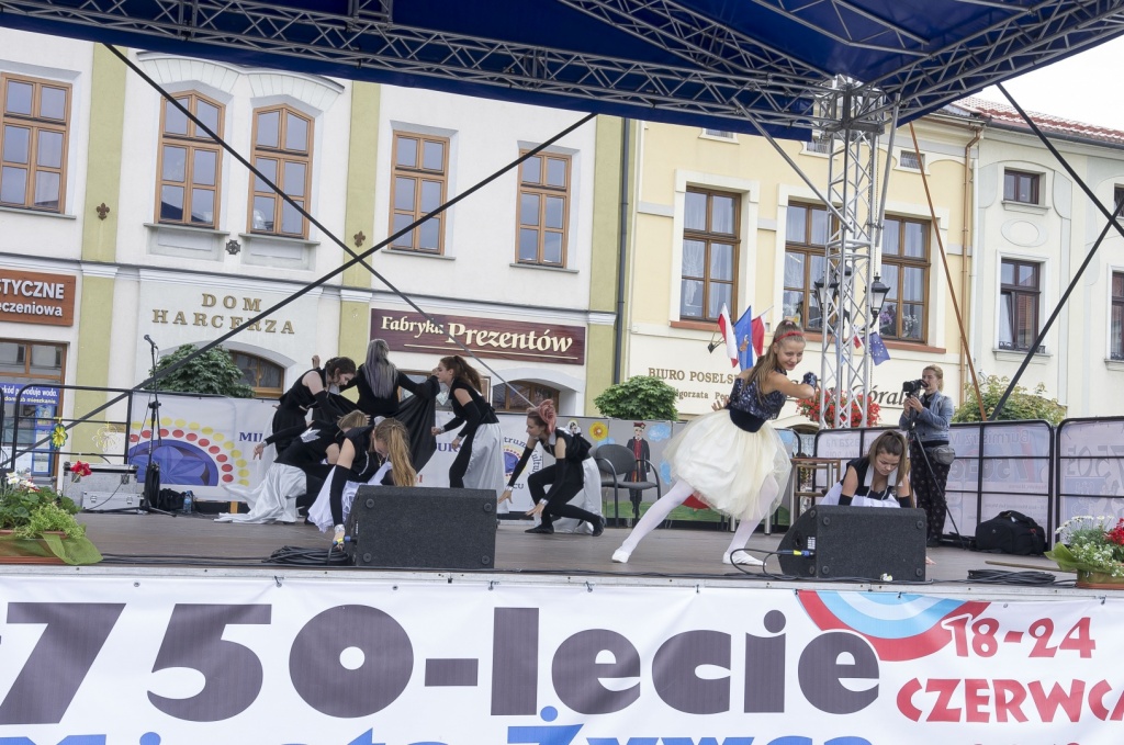18 czerwca rozpoczął się tydzień głównych obchodów jubileuszu 750-lecia Miasta Żywca.Mimo deszczu, nasz Rynek tętnił życiem, a to za sprawą młodzieży szkół podstawowych oraz ponadgimnazjalnych, które prezentowały się ze swoimi programami. O godzinie 10:00 uroczyście przekazano klucz do bram naszego Miasta przedstawicielom dzieci i młodzieży.