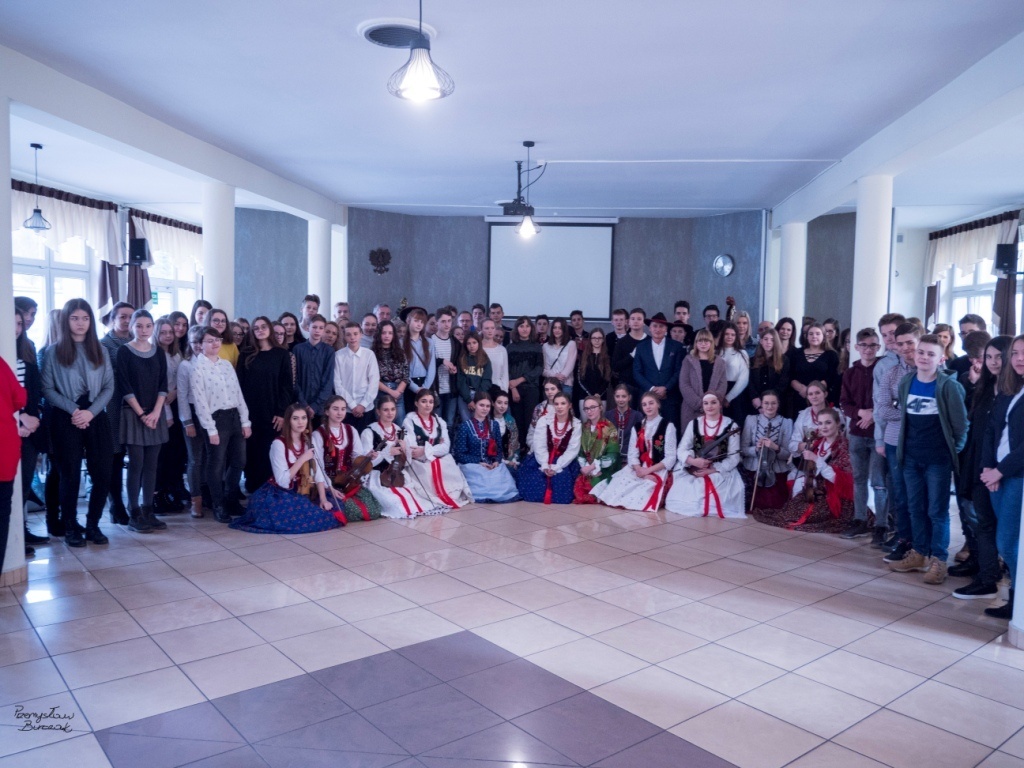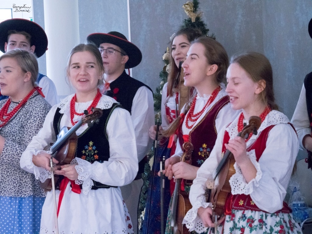 Grupa Kolędnicza, w której skład wchodzą uczniowie naszej szkoły wprowadziła wszystkich obecnych w nastrój zbliżających się Świąt Bożego Narodzenia.
