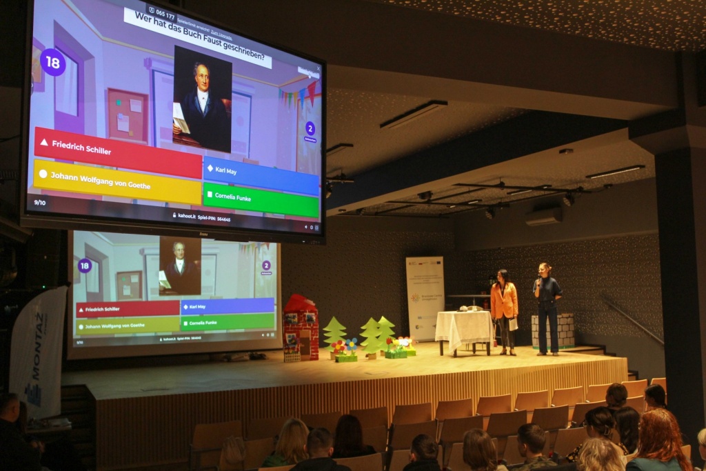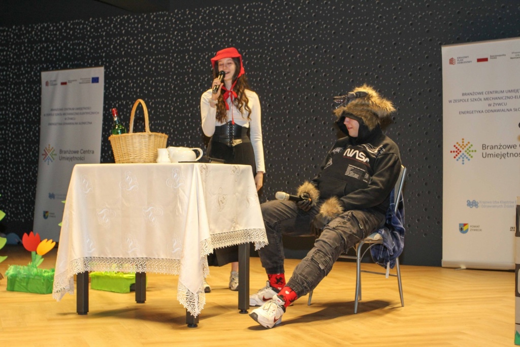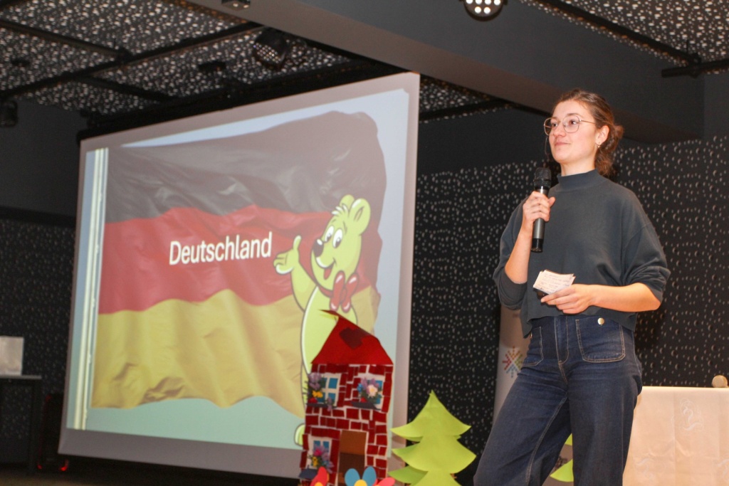 Nie zabrakło również występów artystycznych. Duet taneczny z formacji Aqua Dance – Karolina Sawicka i Kamil Bury pod opieką Pani Anny Kamińskiej przygotował pokazy taneczne w stylu latynoamerykańskim, a nasza native speakerka Lina Görgen poprowadziła wykład na temat Niemiec. Uczniowie klasy 3bLO zaprezentowali inscenizację „Czerwonego Kapturka” w języku niemieckim, a Sandra Pytlarz uświetniła wydarzenie swoim występem wokalnym.