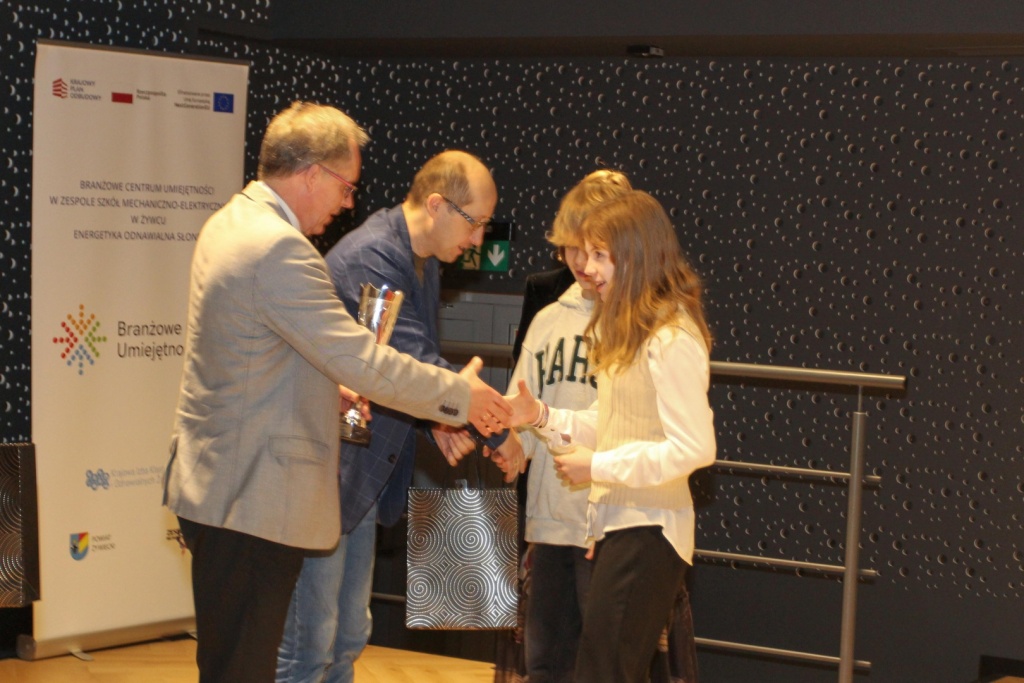 Dziękujemy również Pani Dyrektor Bożenie Piątek oraz wicedyrektorom, Pani Jadwidze Schillak, Panu Piotrowi Nowakowi, Panu Lucjanowi Sawickiemu oraz Panu Sylwestrowi Węglewskiemu za okazaną pomoc. Podziękowania składamy również Panu Sebastianowi Mojżeszowi i Panu Przemysławowi Burczakowi wraz z uczniami i uczennicami ZSM-E, którzy zadbali o oprawę medialną.